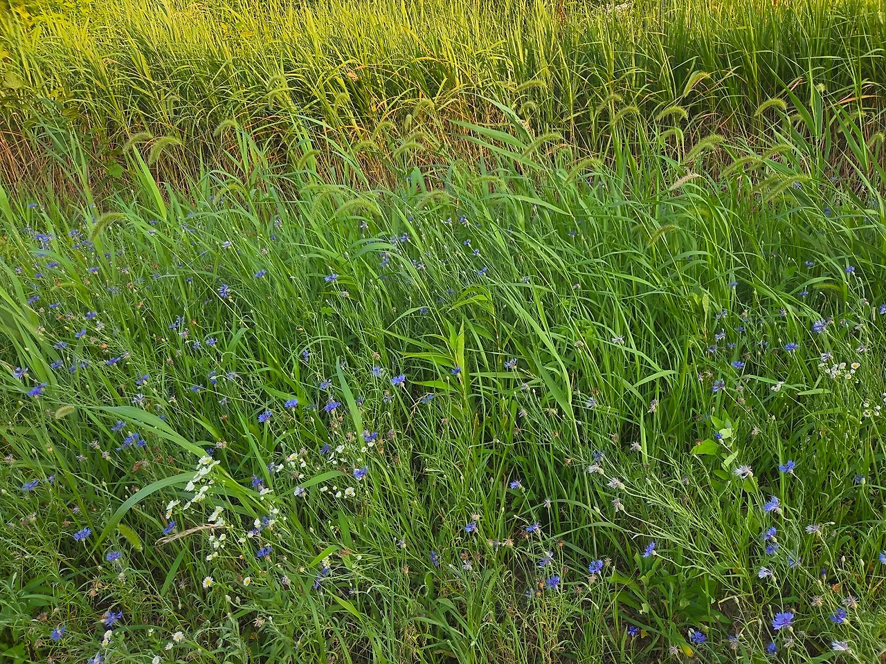 산들거리는 바람에 풀잎이 물결처럼 흘러간다.