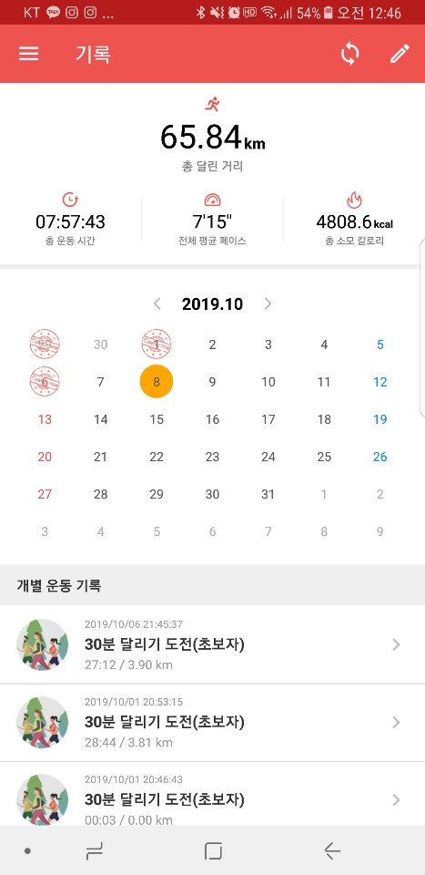 달리기 기록(8,9,10월)