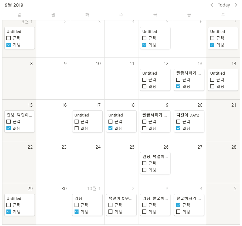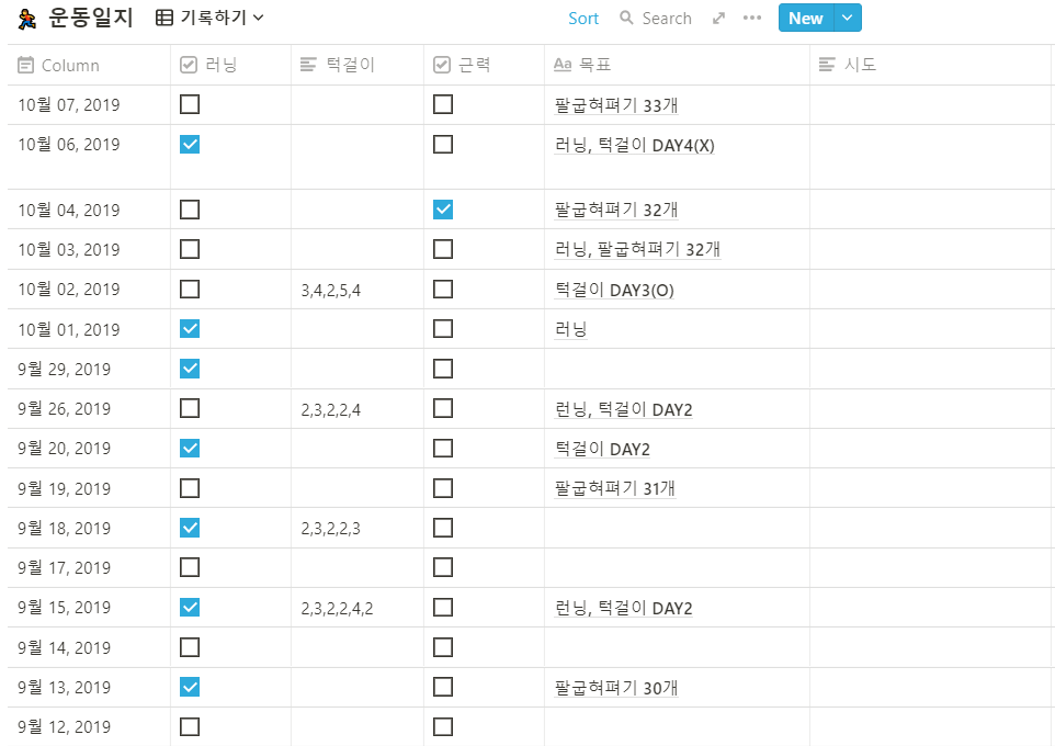 노션에 기록하고 있는 운동일지