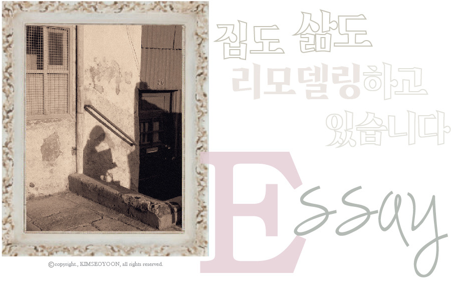 제작이 늦어진 중문과 복층 철제 프레임을 설치하고 여기저기 펜던트 조명들을 달았다. 아직 풀지 못한 짐들을 이리저리로 옮겨가며 미진한 페인트도 손보고 입주 청소 때 손상된 타일을 교체하며 부지런히 내부 공사를 마무리하는 동안 바깥에서는 외벽 페인트가 한창이다. 계절이 몇 번을 바뀌어 이 집을 처음 만났던 가을이 되돌아왔어도 공사는 언제나처럼 진행 중이었다. 일상이 되어버린 공사, 풀풀 공기 중 유영하는 먼지입자는 마치 산소인양 나의 폐를 교란시켰고 공사 소음은 나즈막히 틀어놓은 카페 BGM과 별반 다르지 않은 백색소음으로 익숙해진 지 오래다.