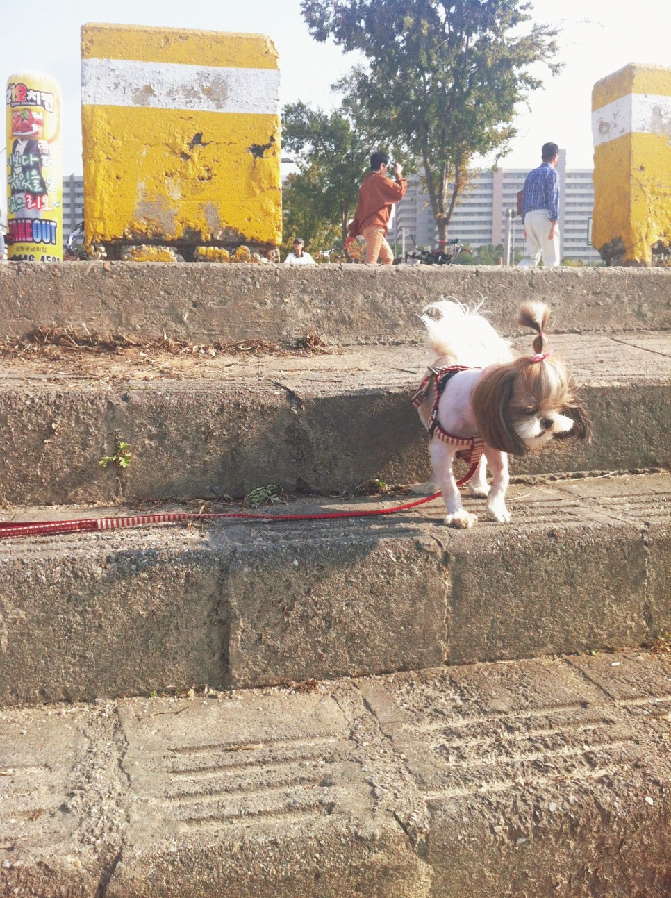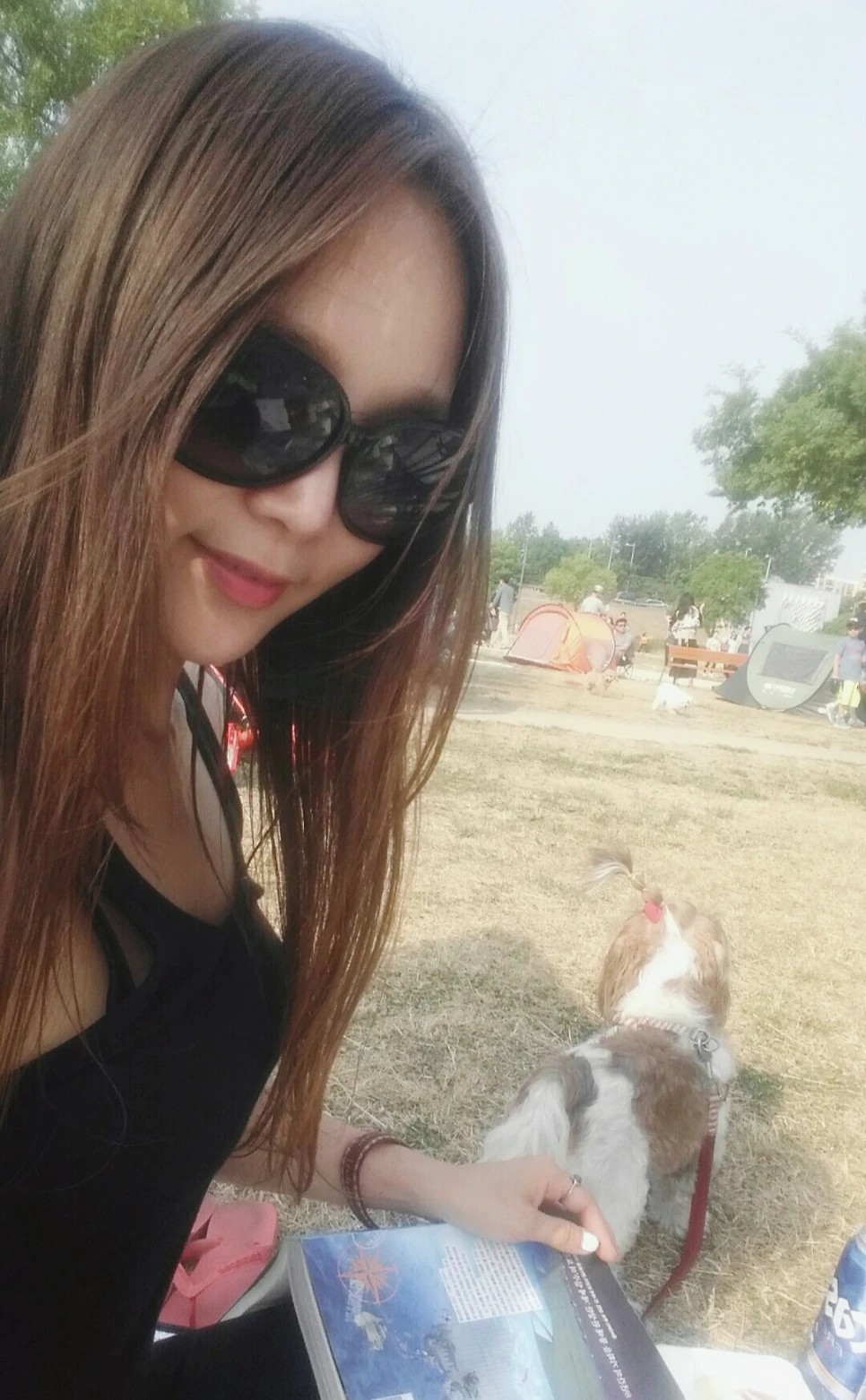 부대낌 많던 삶 속, 가끔씩 평화로우며 서정적이기까지 한 내 삶의 풍경을 만들어준 고마운 울 팡팡이. 꼬질이 김팡팡, 엄마 그리고 쭈 이모가 한강에서 일광욕하던 날, 유난히 빨간색이 잘 어울렸던 팡팡이는 멀리 친구들에게 달려가고 싶어 아련히 눈빛 공격 중.