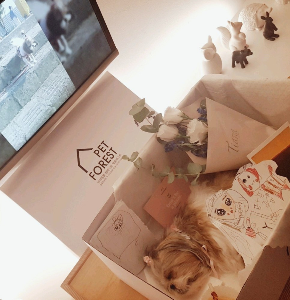 헝클어진 팡팡이를 빗겨주고 평소 자주 하던 도트문양 리본도 핑크색 스카프도 매어주었다. 차가워진 몸위의 한 올 한 올이던 털이 조금씩 뭉텅이로 빠지기 시작했다. 팡팡이의 보드라운 털을 조금 잘라 보관했다.