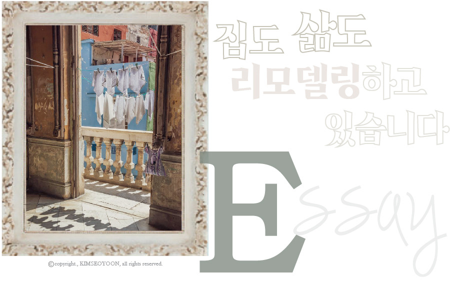 환한 대낮에 무대 단만큼의 높이를 지닌 1층 거실에 앉아 있자니 애써 세운 담벼락이 무색하게도 지나가는 이웃분들과 자꾸만 눈이 마주친다. 에라 모르겠다. "안녕하세요!" 애써 높인 하이톤으로 밝게 인사를 건넨다.