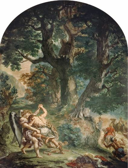 "천사와 씨름하는 야곱"이라는 주제는 미술사 전반에 걸쳐 다양하게 그려져 왔다. 야곱과 씨름하는 상대는 꿈속 인물, 예언적 환상, 천사, 예수 또는 신으로 많은 논쟁이 있어왔는데 현대 신학에서는 야곱이 천사와 벌이는 투쟁이 사실상 모든 그리스도인 영혼 안에서 일어나는 내적 투쟁이라는 개념으로 보는 견해가 지배적이다. 밤새도록 벌인 끈질긴 사투 끝에 야곱에게는 '이스라엘'이라는 새로운 이름이 주어지고 영원한 신의 축복을 받게 된다. ('이스라엘'이라는 명칭의 기원이 되었다.)