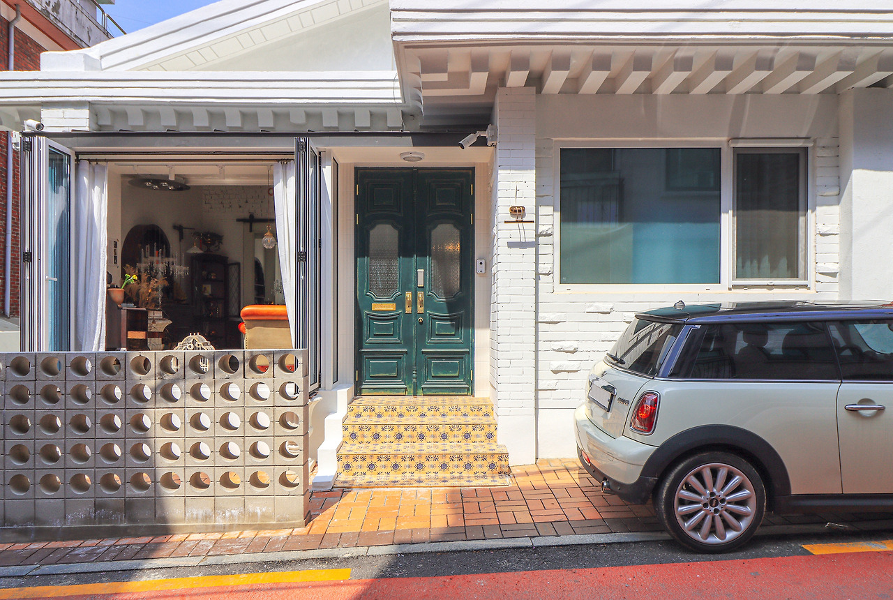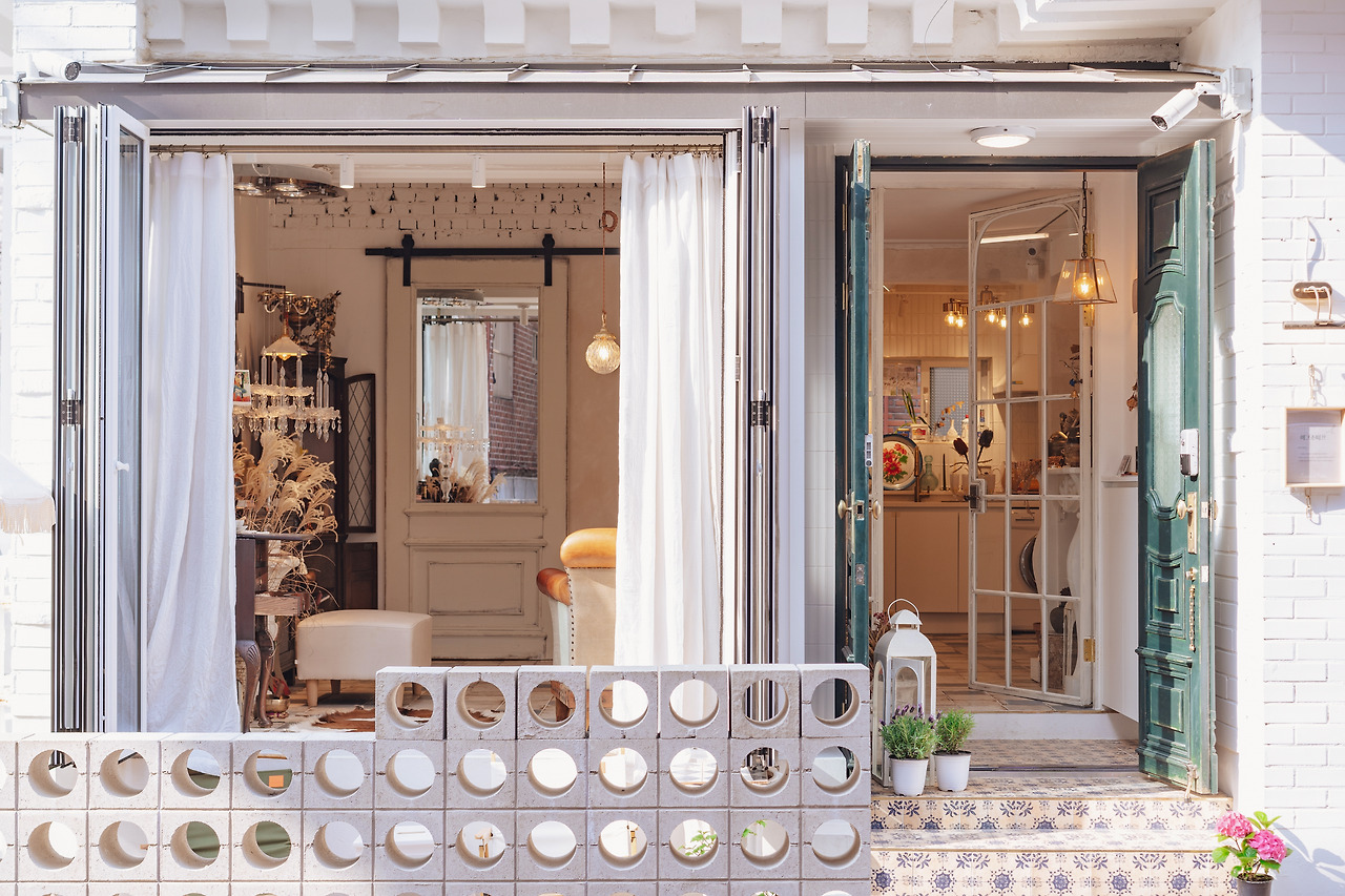 지중해 뉘앙스의 빛바랜 청록색 양개 도어를 열고 들어서면 어떤 비밀스러운 이야기가 펼쳐질까요?