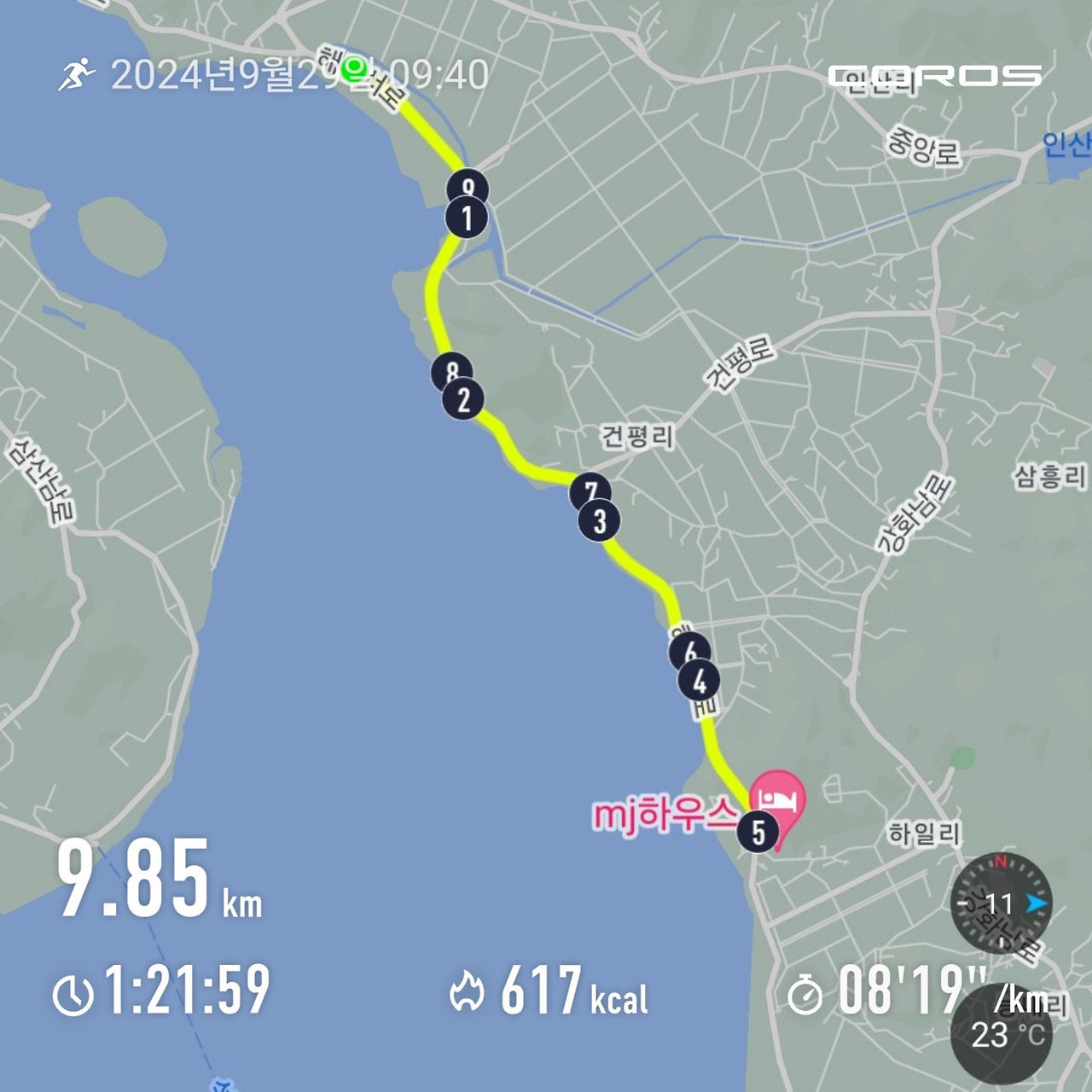 2024년 9월 29일. 우리는 새벽 4시에 일어나서 아침을 죽으로 간단히 때우고 집을 나섰다. 길이 막히지 않아 조금 이른 시각에 출발지인 강화함상공원에 도착했다. 지난 대회에서의 시행착오를 반복하지 않기 위해 이번에는 차근차근 준비했다. 스트레칭과 몸풀기 워밍업 러닝을 하면서 긴장을 풀었다. 지난 마라톤 대회에서는 너무 긴장한 나머지 출발선에 서 있을 때부터 심박이 계속 올라갔었다. 이번엔 그래도 대회 경험이 쌓였다고 조금 더 침착할 수 있었다.