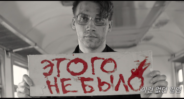 첫 번째 ‘없던 일’은 이들이 처음 만나 해변에서 함께 노래를 하며 밤을 지새우고 레닌그라드로 돌아오는 기차 안에서 등장한다. 적국인 미국의 노래를 부른다며 시비를 거는 남자에 의해 일행 중 한 명이 경찰에게 끌려가 폭행을 당한다. 돌연 ‘안경 쓴 남자(회의론자, Sceptic)’가 출현하더니 토킹 헤즈(Talking Heads)의 ‘사이코 킬러(Psycho Killer)’ 노래가 흐른다. 마치 뮤직비디오처럼 경찰들과 맞서 싸우는 이들의 모습 위에 현란한 자막과 CG가 화면을 가득 채운다. 노래가 끝날 때쯤 조금 전의 그 안경 쓴 남자가 다시 나타나 '이건 없던 일임'이라는 푯말을 든다. 그렇게 첫 번째 '없던 일'이 마무리된다. 현실에서는 억누를 수밖에 없었던 저항 정신이 ‘없던 일’ 시퀀스에서 마음껏 분출된다.