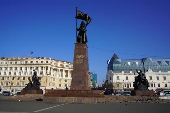 사회주의 혁명 성공을 기원하며 만든 동상들이 서 있는 곳으로, 1937년 고려인들의 강제 이주가 이루어진 블라디보스톡 혁명광장. 지금은 각종 행사가 열리고 많은 시민들이 모여드는 곳이다.