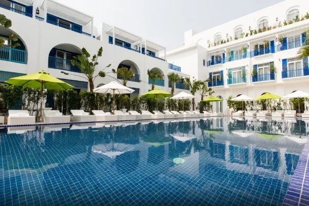 라이즈마운트 리조트 다낭은 그리스 산토리니에서 영감을 받아 시원한 푸른빛과 밝은 분위기가 돋보이는 익스피디아 VIP ACCESS 리조트다. 전체적으로 화이트 & 우드 톤의 깔끔한 인테리어에 쾌적하게 관리되어 있기 때문에 아이와 함께라도 편안하게 휴식을 가질 수 있으며 객실마다 넓고 편안한 침구류에 전신 욕조도 있어 여독을 풀기에도 완벽하다. 객실 외에도 정원, 루프탑 수영장, 피트니스센터, 키즈 클럽 등 다양한 부대시설이 마련되어 있으니 참고하자. 미케 해변과도 도보 3분이면 갈 수 있어 접근성도 나쁘지 않다.