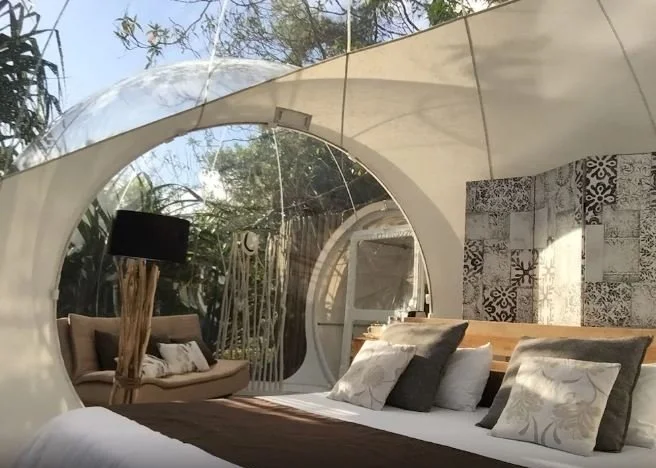 버블 로지 부아 셰리는 투명한 볼 형태로 되어 있는 독특한 숙소로 유명한 곳이에요. 자연 속으로 둘러싸여 있어 아침부터 저녁까지 주변의 자연과 호수의 풍경, 아침의 새소리, 밤하늘의 별까지 자연을 가까이에서 고스란히 느끼며 힐링의 시간을 보낼 수 있어요. 리조트 내에 있는 정원에서는 동물들도 만날 수 있을 만큼 자연친화적인 분위기를 자랑한답니다 :) 직원들도 매우 친절하여 만족스러운 하룻밤을 보낼 수 있어요. 다른 곳에서는 경험해보지 못할 색다른 추억을 남기고 싶은 허니무너들이라면 이곳을 추천합니다~!