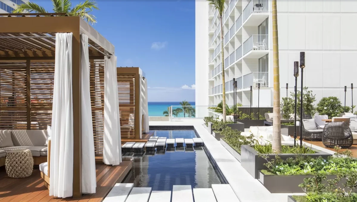 하와이를 찾는 신혼부부라면 알로힐라니 리조트 와이키키 비치를 주목해보자. 와이키키 시내의 중심, 해변 바로 앞에 있어 해수욕 및 쇼핑을 즐기기 좋으면서도 리조트의 보안이 철저하고 방음 시설이 뛰어난 편이기 때문에 조용히 쉬기에 좋다. 익스피디아 VIP ACCESS 리조트답게 호텔 컨디션도 좋은 편! 객실도 화이트 & 우드 톤의 깔끔한 인테리어에 다른 호텔에 비해 넓은 편이기 때문에 짐이 많더라도 편안하게 휴식을 가질 수 있으니 참고하여 머물러보자. 리조트 내에서도 바다와 맞닿은 인피니티 풀은 이곳의 자랑! 수영을 하며 바라보는 풍경이 아름답기로 유명하니 이곳에 머무른다면 꼭 풀장에서의 시간도 즐겨보자.
