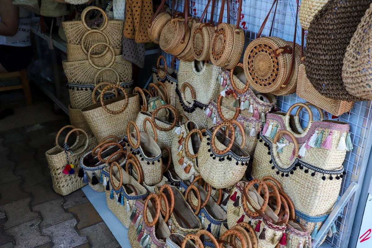 동남아 휴양지룩과 믹스 매치 하기 좋은 라탄백 역시 한시장에서 판매하고 있다. 크기 및 디자인의 정교한 정도에 따라 가격이 천차 만별이다. 라탄백역시 부르는 것이 값이 가게마다 동일하게 유통되는 제품이 있으니 구입하고 싶은 디자인이 있다면 가게마다 비교해보고 가장 저렴하게 판매하는 곳에서 구입하면 된다.
