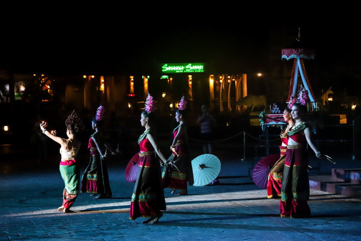 밤이 되면 나이트 사파리가 본격적으로 시작되며, 태국 북부지방의 전통 무용과 함께 동물쇼도 준비되어 있다. 볼거리와 즐길 거리가 많아서 주로 가족여행 단위로 치앙마이를 찾는 사람들에게 큰 인기를 끌고 있다. 물론 어린 자녀가 없는 여행객이라도 다녀오는 것을 추천한다. 단순하게 동물을 보고 오는 것 이상으로 볼거리가 풍부하기 때문이다.