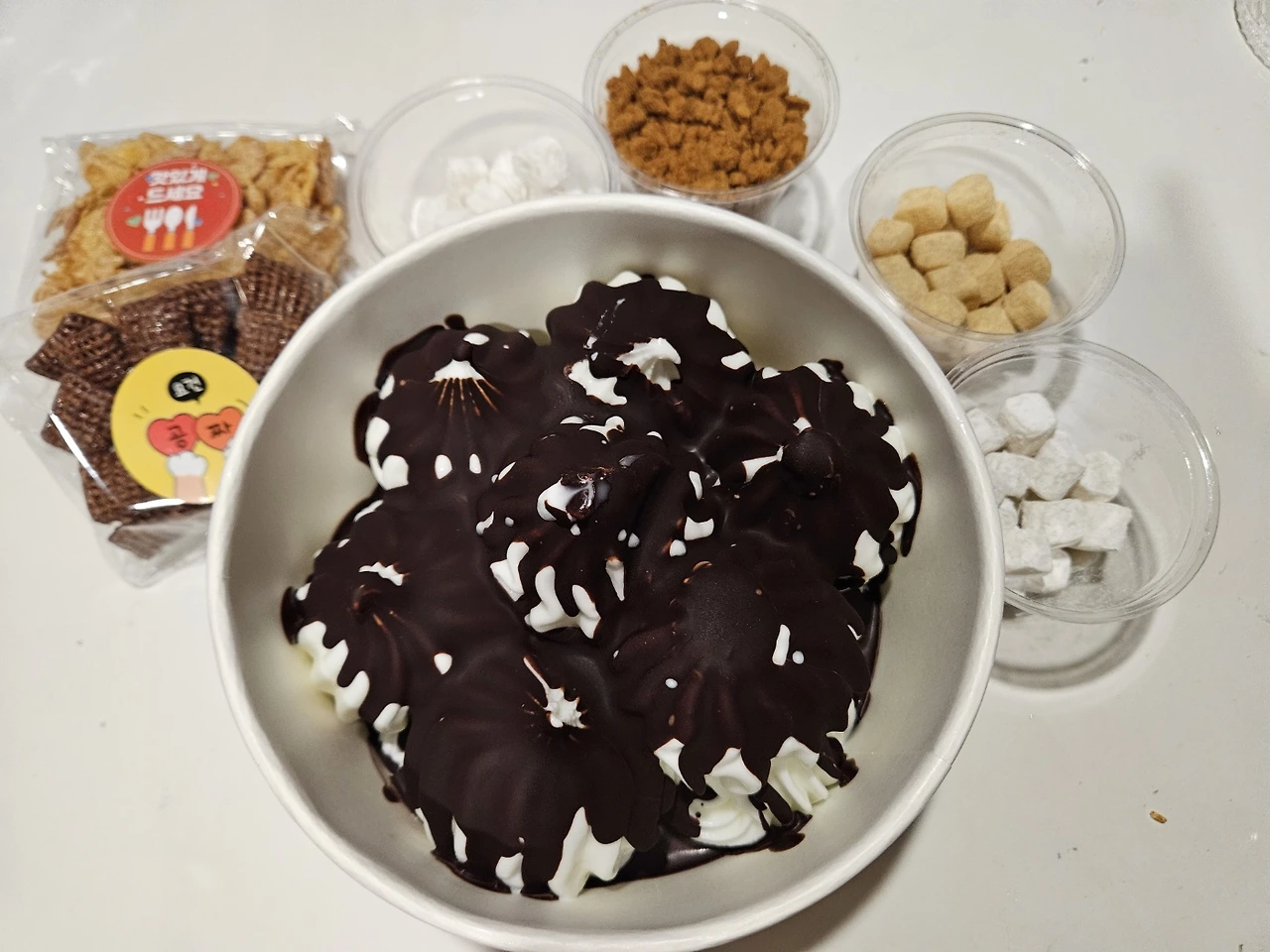 +야식으로 족발과 껍데기, 요거트 아이스크림.