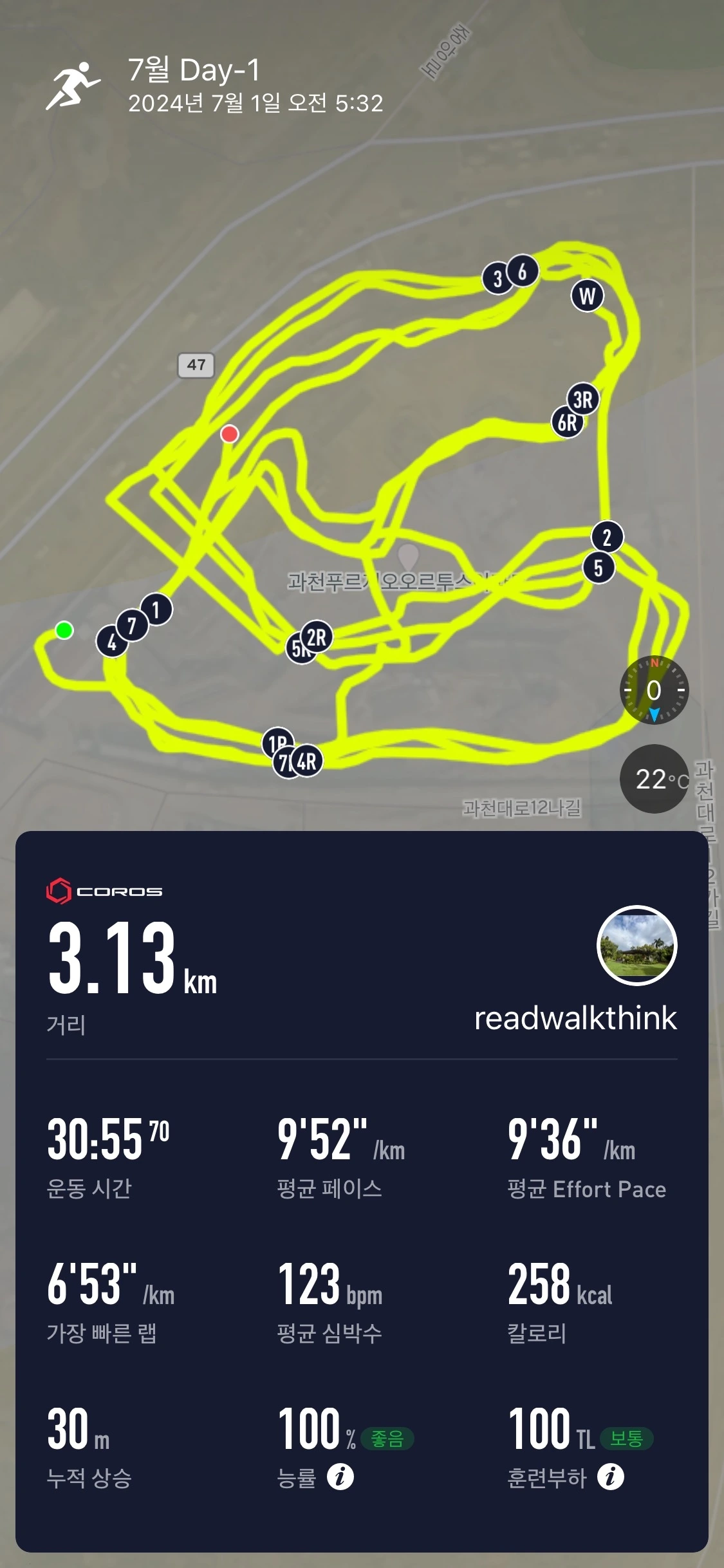 7월의 100km 달리기를 통해, 업무로 쌓인 불필요한 걱정과 생각들을 버릴 수 있으면 좋겠습니다. 지금 내가 하는 것에 몰입하고, 조금 느리더라도 끝까지 해내는 지구력 또한 더 강해진다면 더 바랄 게 없을 것 같습니다. 요즘 들어 일로, 사람으로 버거운 시간들이 많은데 부정적인 쪽으로 흘러가는 나의 생각들도 늘 따뜻한 양지에 머무르길.
