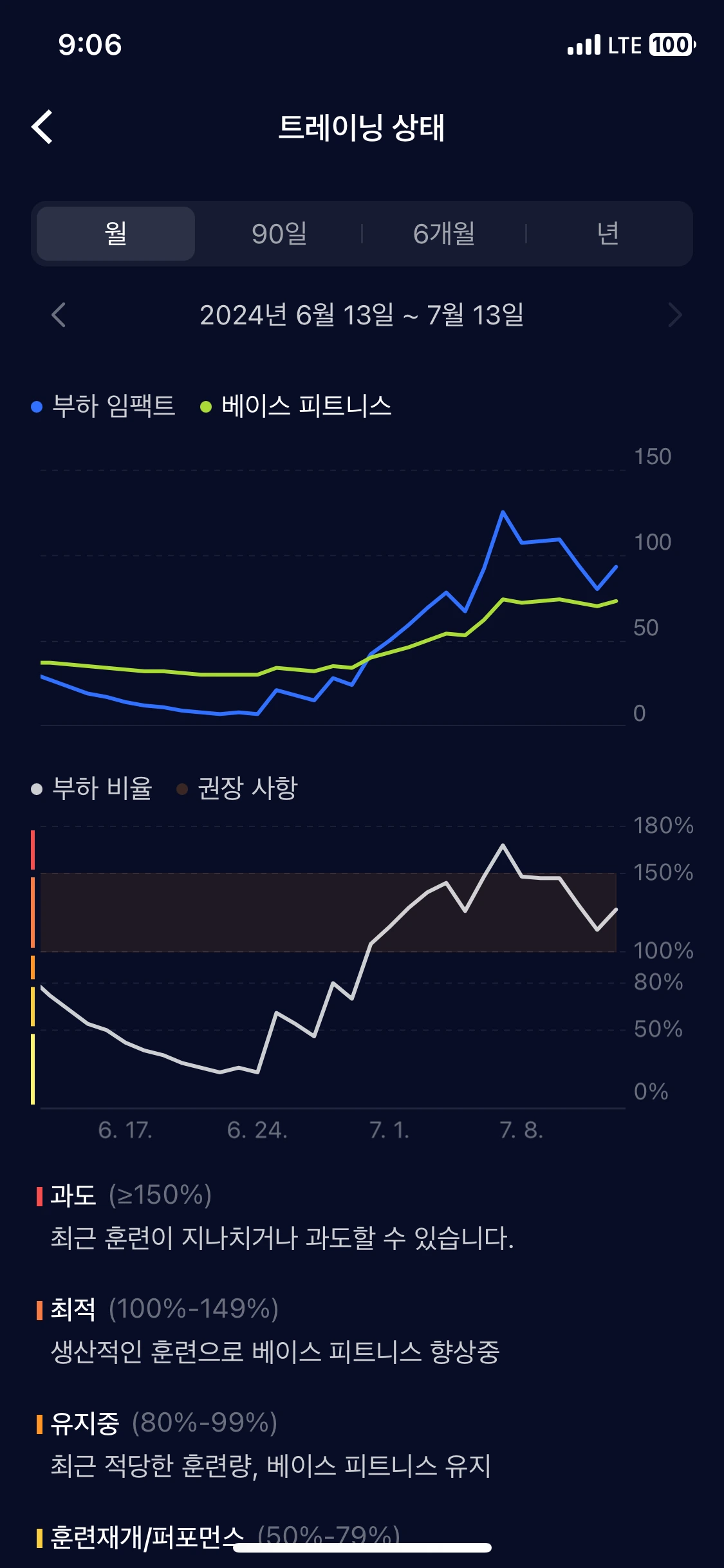 인터벌 시간은 짧지만 횟수를 늘리니, 며칠 쉬었던 컨디션을 빠르게 부스트 해준다는 느낌이 들었습니다. 땀도 엄청 흘렸고 만족스러웠어요. 베이스 피트니스가 향상되고 있는 최적의 상태라 하니 더더욱 기분이 좋았습니다.