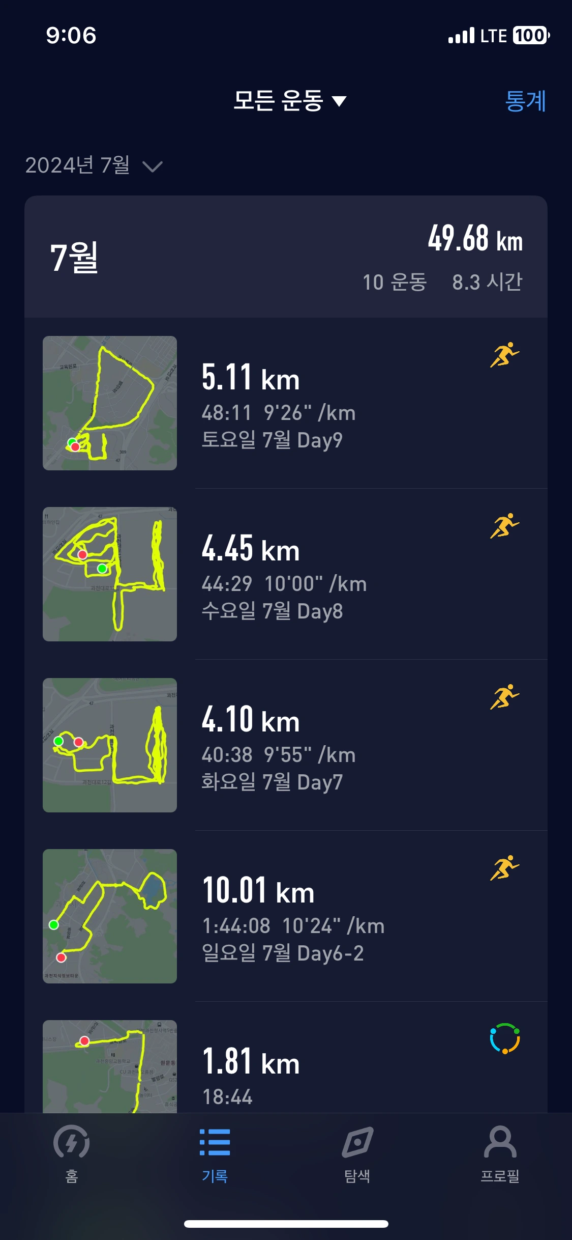 7월 100km 달리기 목표가 벌써 반이나 채워져가고 있습니다. 내주에는 인터벌 러닝의 시간을 2분 30초 정도로 8회 정도만 반복하는 것으로 운동 계획을 잡아보고 있습니다. 시간이 지나면서 동네만 달리는 것도 조금은 지겨워지고 있어서 오늘도 멀지 않은 단지 외부로 달렸습니다. 가끔은 이런 소소한 변화가 기쁨이 되기도 하고 또 다른 에너지를 공급해주기도 합니다.