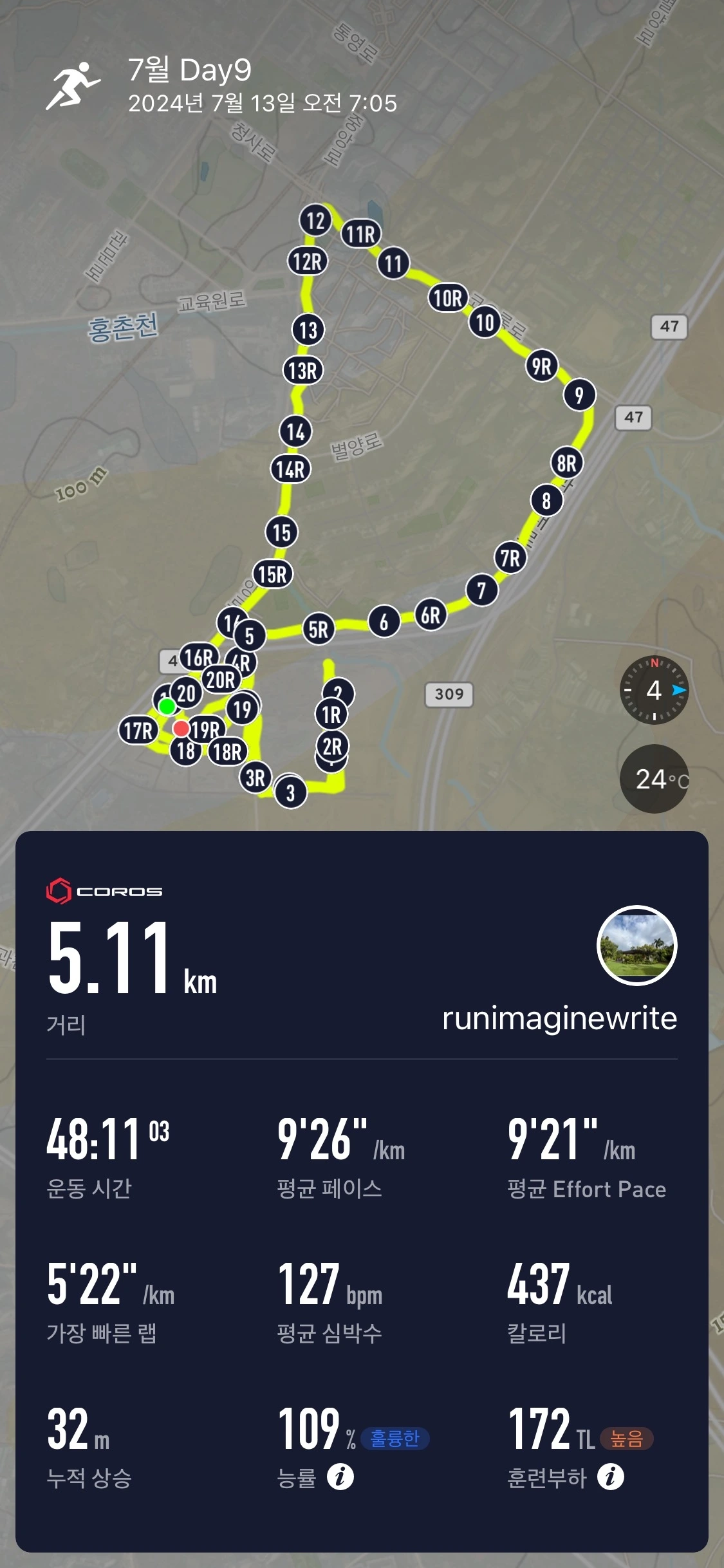오전부터 외부 일정이 있는 날이기에, 토요일이지만 가볍게 5km 정도만 달렸습니다. 내일도 있으니까요! :)