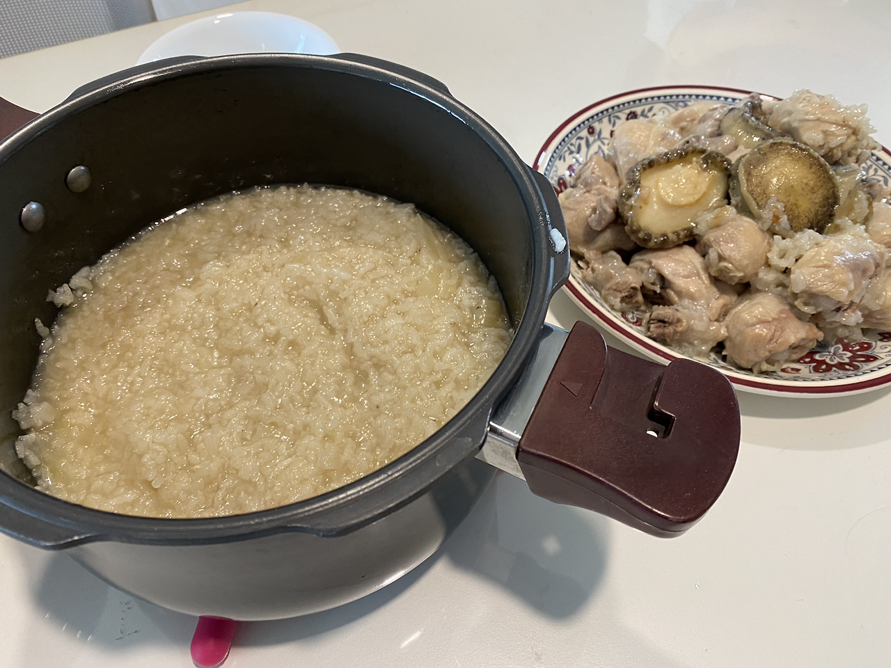 오후엔 내주 목요일(25일) 중복 기념으로 미리 전복 닭다리 누룽지삼계죽을 먹었습니다.