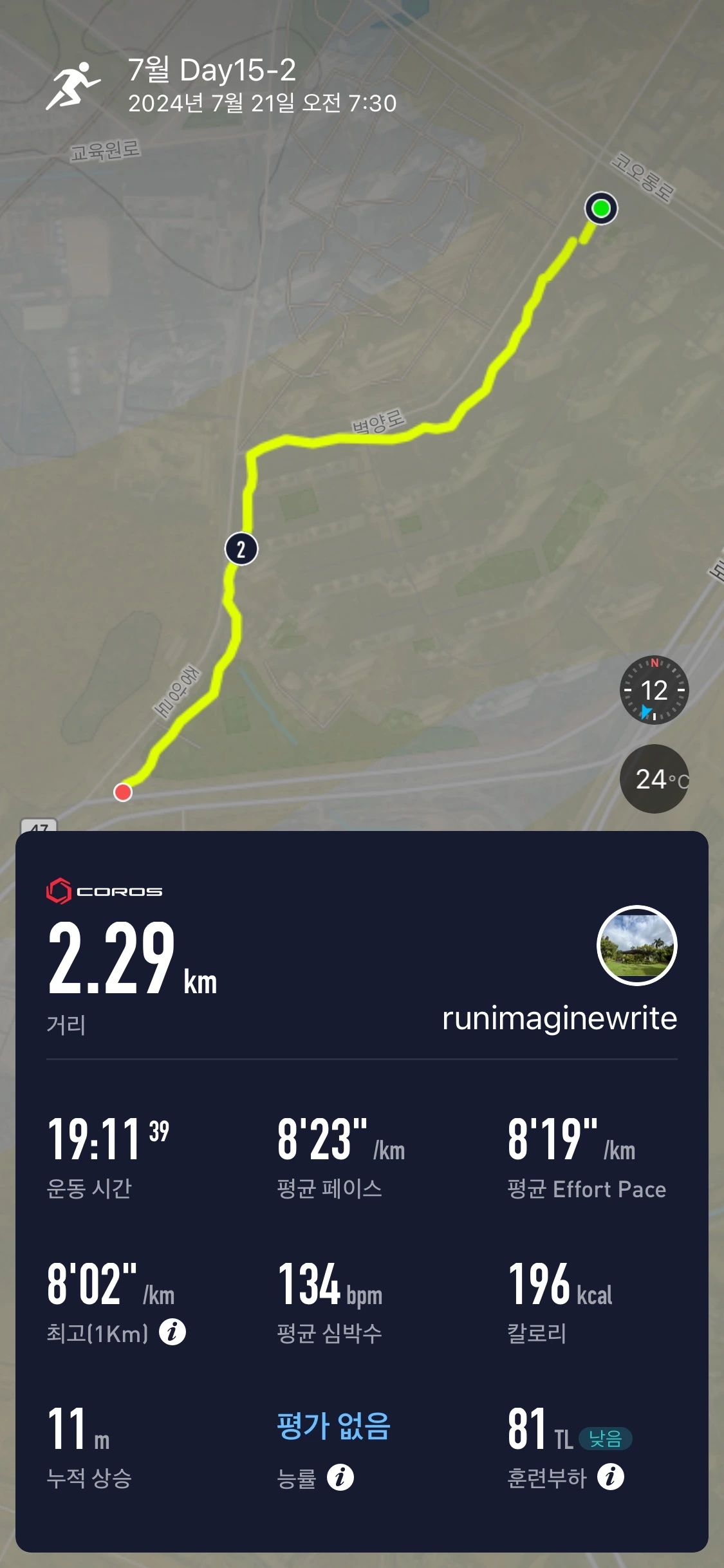 사이즈가 안 맞아 교환을 했는데, 새로 도착한 상품도 발목에 있는 밴드가 꽉 죄는 바람에 뛰다가 다시 들어와서 신발을 바꿔 신고 나갔어요. 그러다 보니 오늘은 두 번의 러닝이 되었습니다.