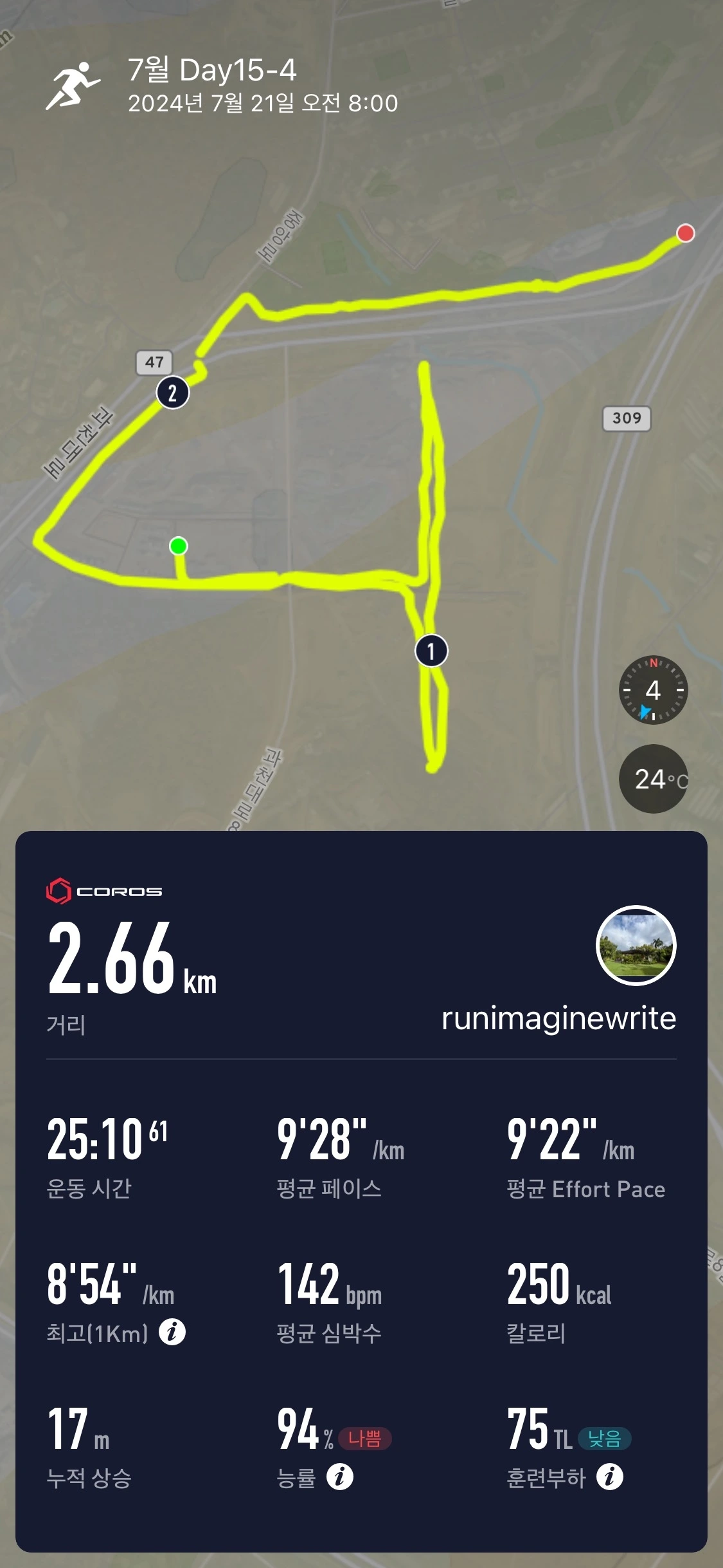7월 1일부터 달리며 몇 가지 마음의 변화가 생기기 시작했습니다. 우선 달리기를 쉬게 되는 날, 마음이 불편해집니다. 몸도 이유 없이 무거워지는 것 같고요. 그러다 보니 매일 조금씩 꾸준히 달리는 것의 중요성을 더 느끼게 됩니다. 그리고 건강해지는 것들에 대한 관심이 늘어갑니다. 식사든 생활습관이든 이왕이면 몸에 더 좋은 것을 챙기게 되고 나쁜 것은 멀리하게 됩니다. 또 업무를 마무리하면 일찍 퇴근해서 가족들과 함께하는 시간을 보냅니다. 그리고 늦지 않게 잠들고 있어요. 보통 열 시 전후면 침대로 가서 눕습니다. 잠도 쉽게 드는 편이고요. 평균적으로 6시간 반에서 7시간 반 가량 수면을 취합니다. 저에게는 저 정도의 수면, 그리고 하루 30~40분 정도의 달리기가 휴식과 에너지를 제공해 줍니다. 둘 중 한 곳의 리듬이 깨지면 가장 오랜 시간을 보내는 직장에서의 일과가 무너지기도 합니다. 컨디션에서의 차이도 있고요.