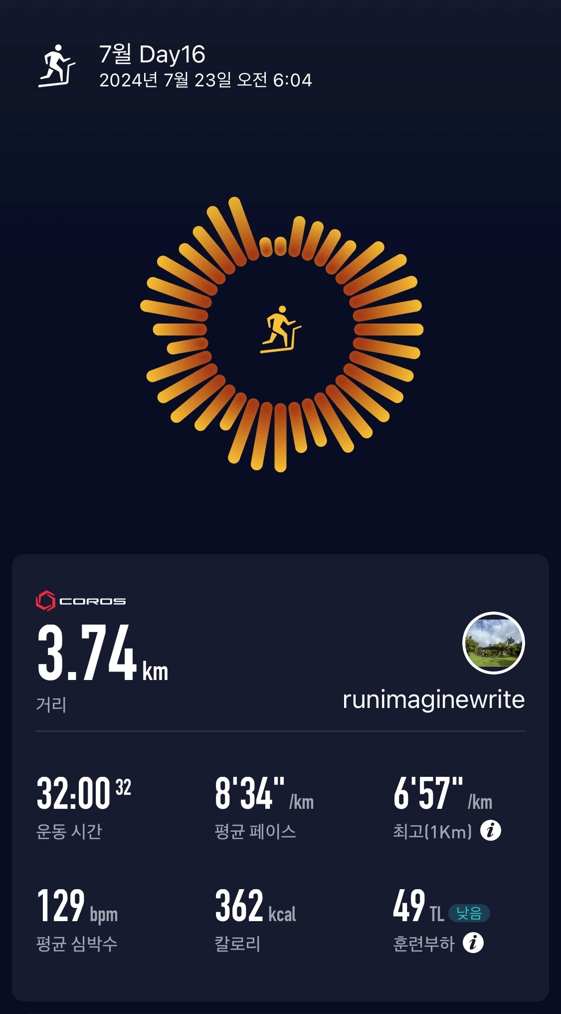 쿠션화가 아닌 워킹화를 신고 사부작사부작 달렸는데도 15분가량 지나니 땀이 비 오듯 쏟아졌습니다. 그러면서 생각이 들었어요. 요즘 같은 장마철엔 고민하지 말고 트레밀에서 30-40분씩 뛰는 것도 좋겠다고 말이죠. 매월 관리비에서 5천 원 정도가 사용비 명목으로 지출되고 있으니 잘 활용해야겠다는 생각이 들었습니다. 오랜만의 트레드밀 런은 나쁘지 않았습니다. 그래도 밖에서 달리고 싶다는 생각을 지울 수는 없었는데 마침 날이 개고 있었습니다. 그래봤자 또 비는 내리겠지만, 운동을 마치고 나선 단지 내 반바퀴 정도를 쿨다운 차원에서 걸어봤어요.