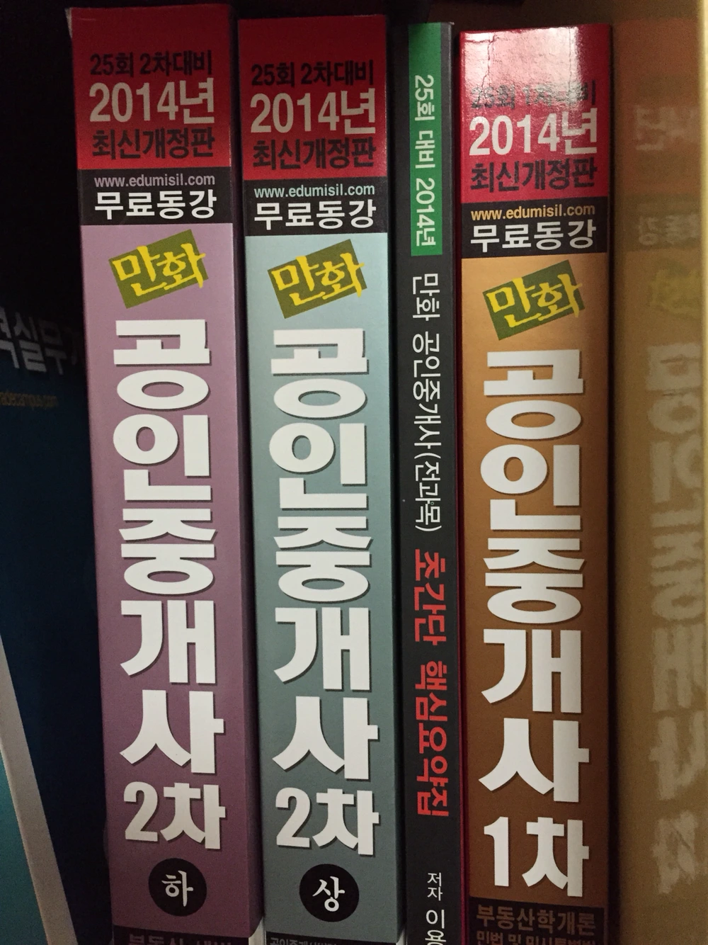 시험 준비라고는 수능시험 이외에는 해본 적이 없어서 일단 서점에서 보기 편하게 생긴 수험서를 샀다. 과목별로 되어 있는 것도 아니고 1차 과목 1권, 2차 과목 1권으로 된 책이었다. 그 당시에는 주변에 공인중개사 시험에 대해 물어볼만한 사람도 없었고 월급을 제대로 받는 상황도 아니었기 때문에 학원을 다닐 수도 없었다. 넉넉지 않은 상황에서 시험을 준비하는 상황이다보니 늘 최소의 비용으로 최대의 효과를 얻어야만 했다.