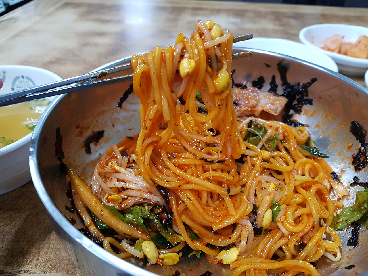 고기국수가 유명하다는 자매국수에 가서 한 15분 정도 대기를 하고 비빔국수를 먹었어요. 막 특별한 맛은 아니었지만 꽤 괜찮았습니다. 양이 많은 편은 아니에요.