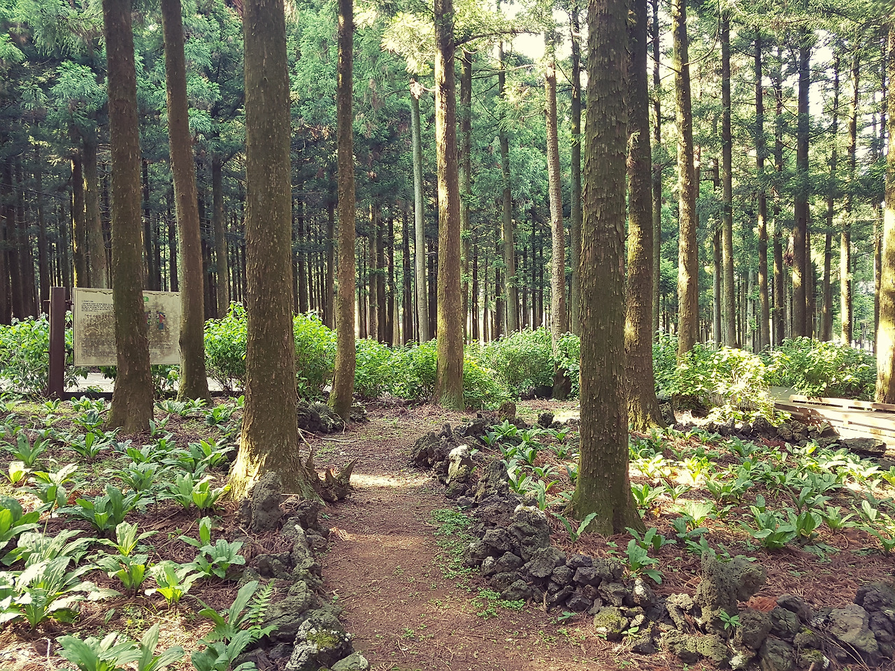 여러 산책길로 되어 있고, 산으로 연결되는 코스도 있는데 산책길만 돈다면 1시간 정도밖에 소요되지 않습니다. 근데 절물휴양림은 산책만 하는 곳이 아니라 곳곳에 놓인 평상에 누워 휴식하는 게 큰 묘미에요. 누워있으면 높은 나무들이 눈 앞에 쫘악 펼쳐져 멋지거든요.