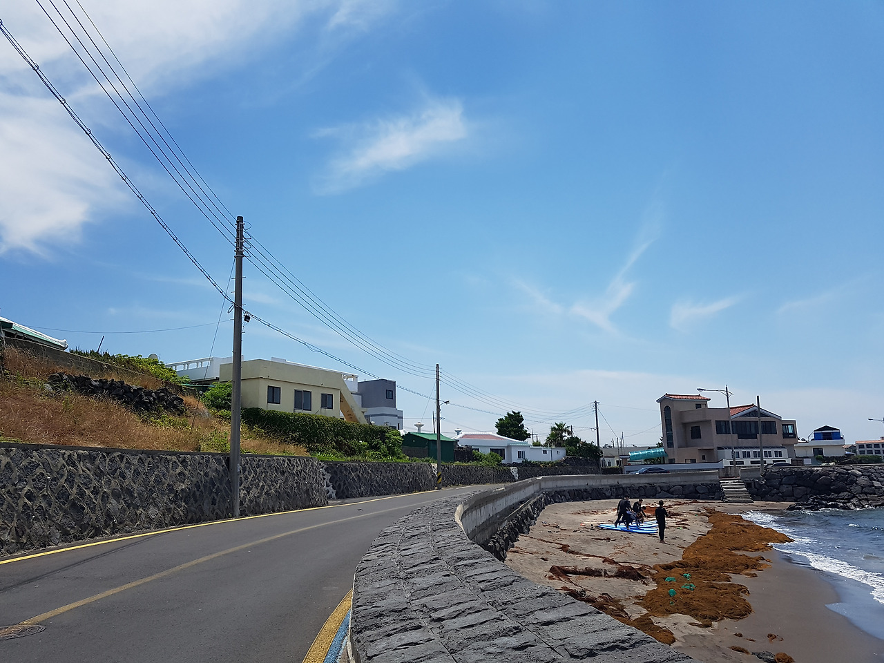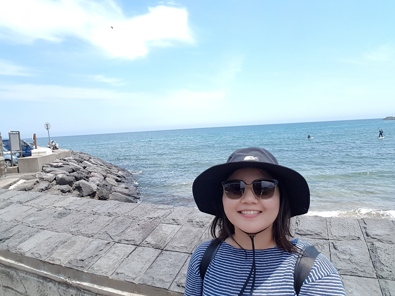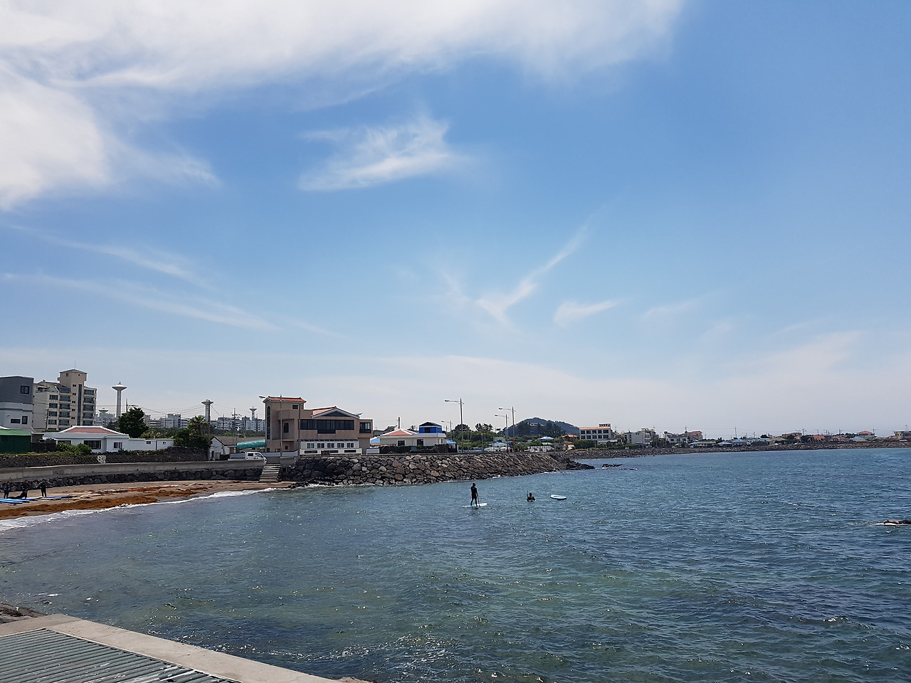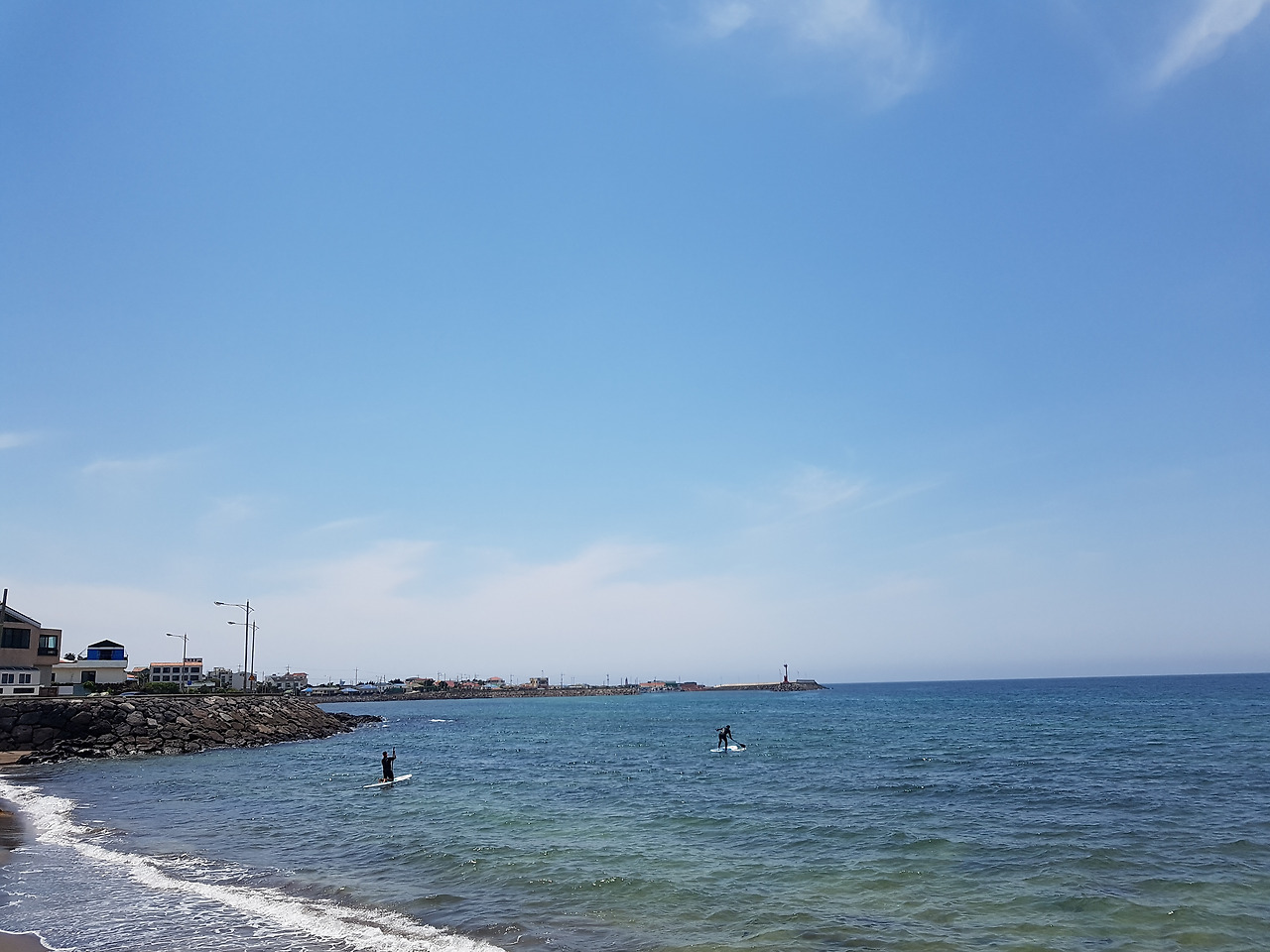 정말 날씨가 끝내줬어요! 잠깐이라도 바다를 보러 오기 잘했다는 생각이 바로 들었어요. 여기에 서핑 배우러 단체로 오셨더라구요. 아니면 뭐 다 모아놓고 강습을 하시는 건지. 강사님이 막 소리를 치면서 열심히 가르치고 있는 현장이었습니다. 날씨가 정말 좋아서 서핑이 더 즐거우셨을거 같아요.