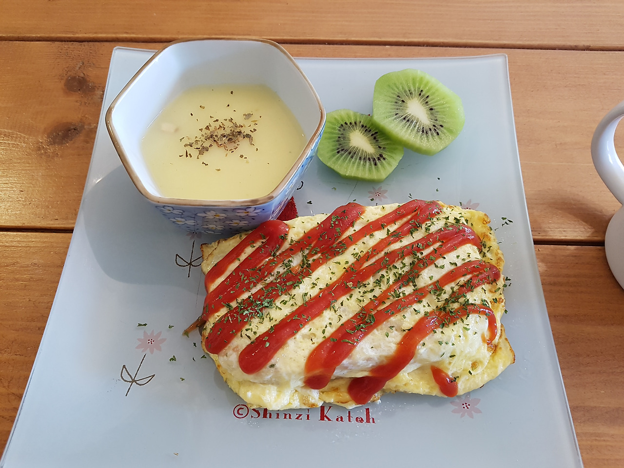 조식을 주시는데 여행객마다 숙박 첫째날엔 피자토스트를 주시고 그다음날엔 이렇게 오믈렛을 주십니다. 3박을 하신다면 세번째날은 다시 피자토스트, 이런식이에요. 정갈하고 맛있어요. 그리고 따뜻한/시원한 커피, 주스, 생수 이렇게 음료수도 준비해주시구요. 아이스커피가 정말 시원하고 잠이 확 깨서 매일 마셨네요. ㅎㅎ