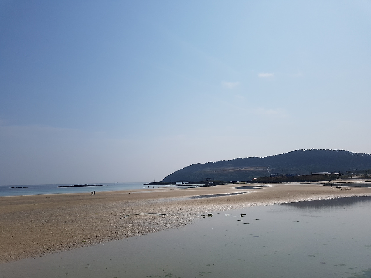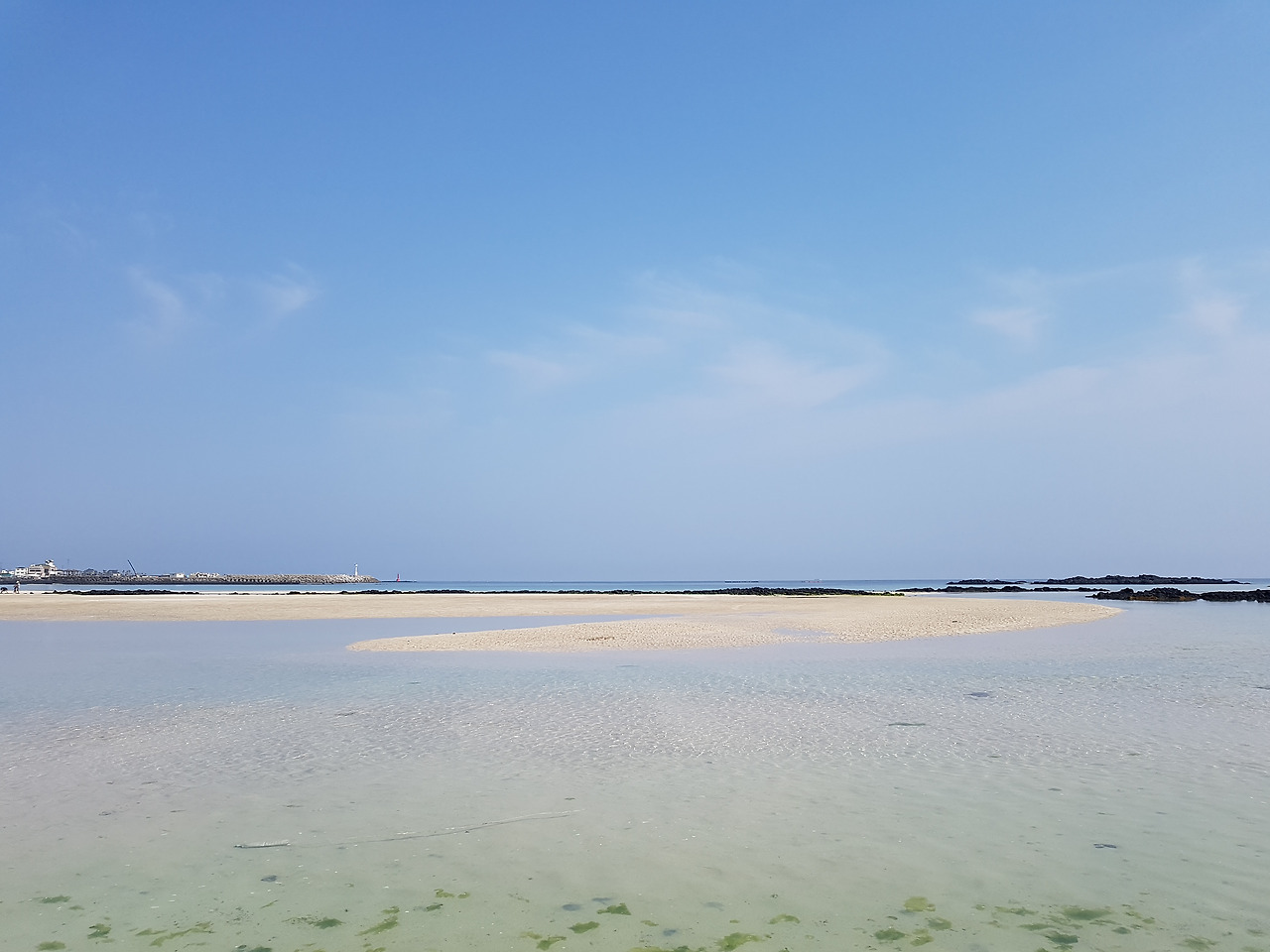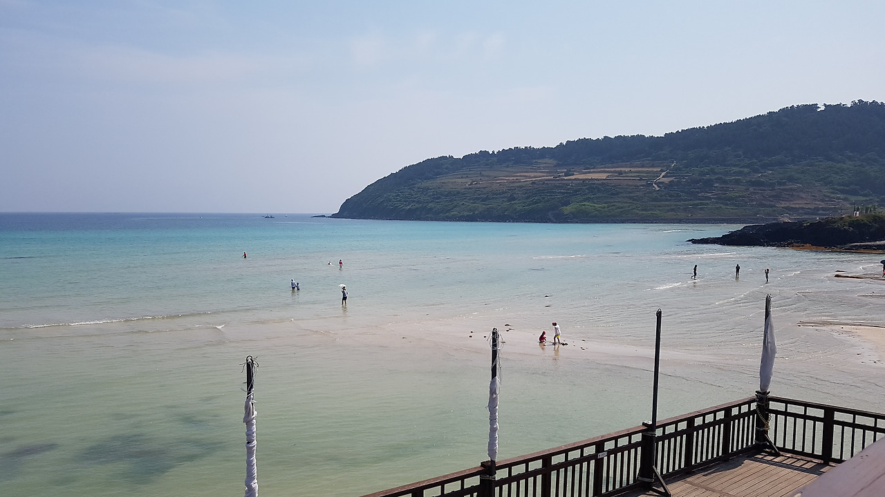 여기도 역시 수심이 깊지 않아서 몸을 완전히 담그는 해수욕보다는 계곡에서 놀듯이 다리까지 담가 물장구치며 놀기에 좋은 것 같아요. 예쁜 바다인 만큼 연인과 가족들이 많았던 곳이에요.