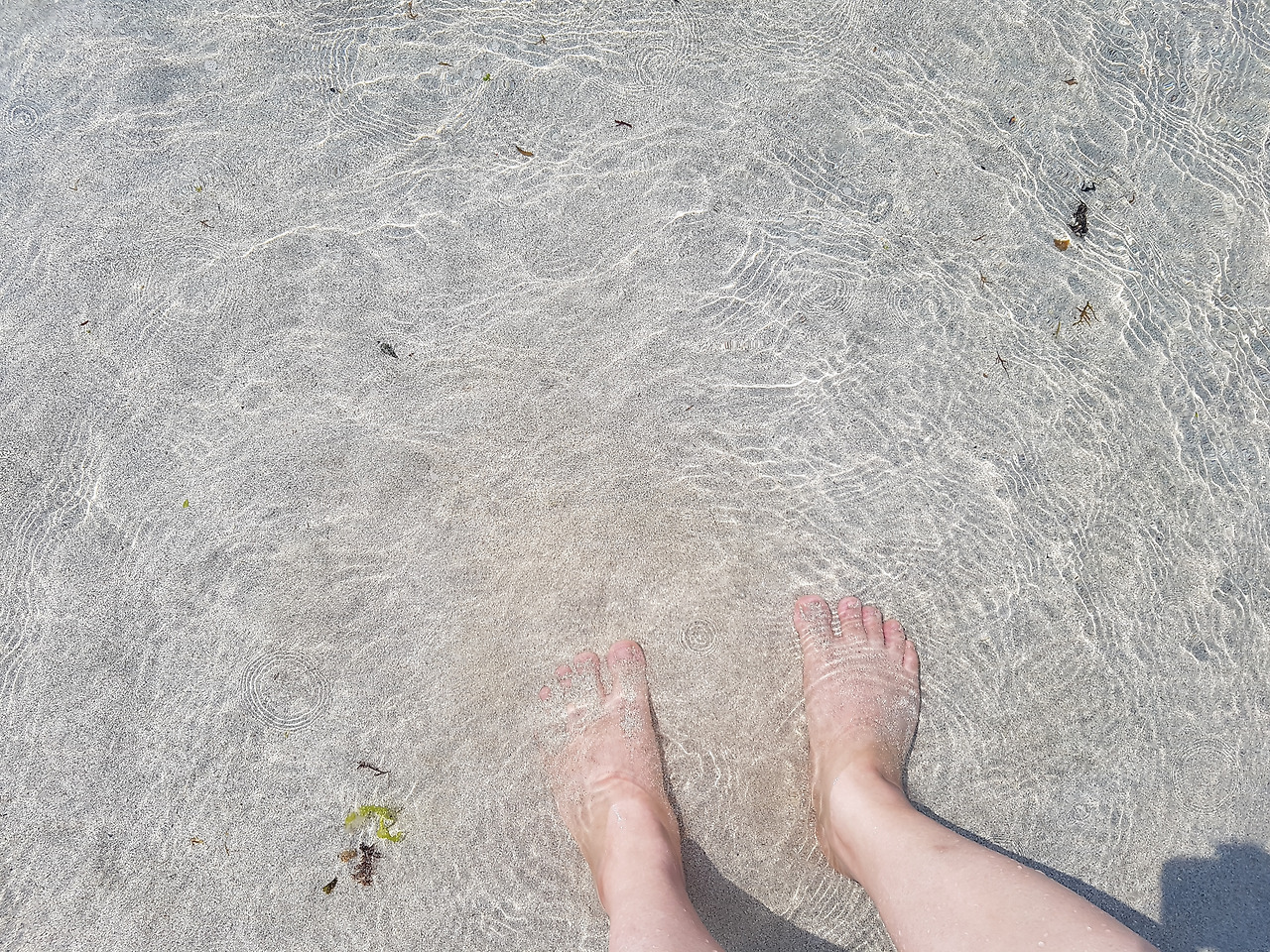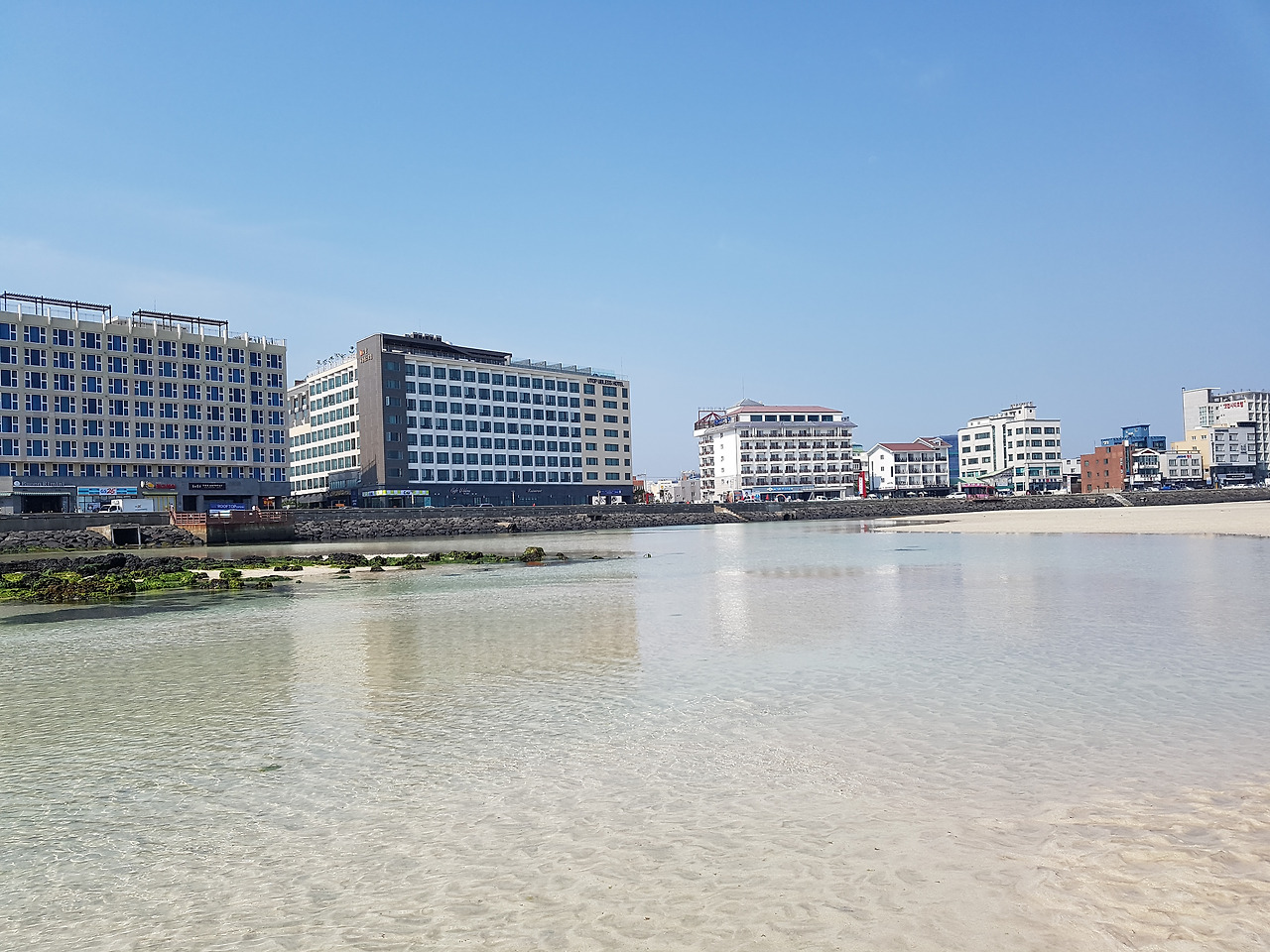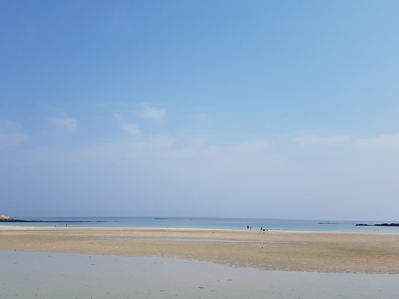 여기도 역시 수심이 깊지 않아서 몸을 완전히 담그는 해수욕보다는 계곡에서 놀듯이 다리까지 담가 물장구치며 놀기에 좋은 것 같아요. 예쁜 바다인 만큼 연인과 가족들이 많았던 곳이에요.