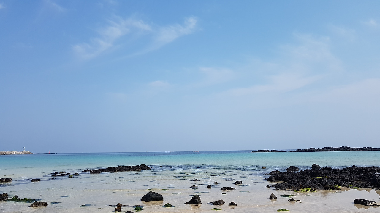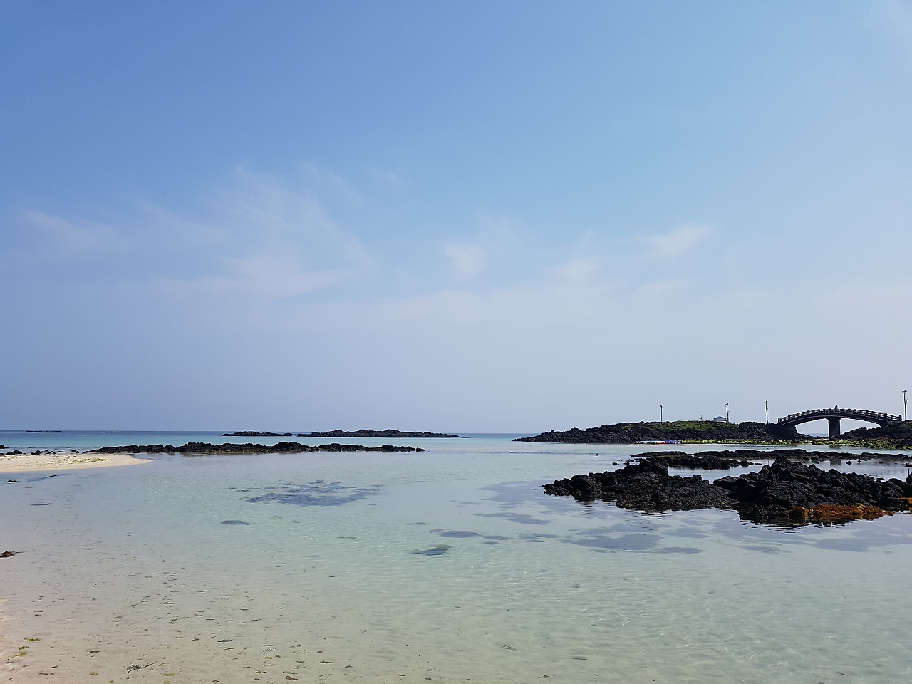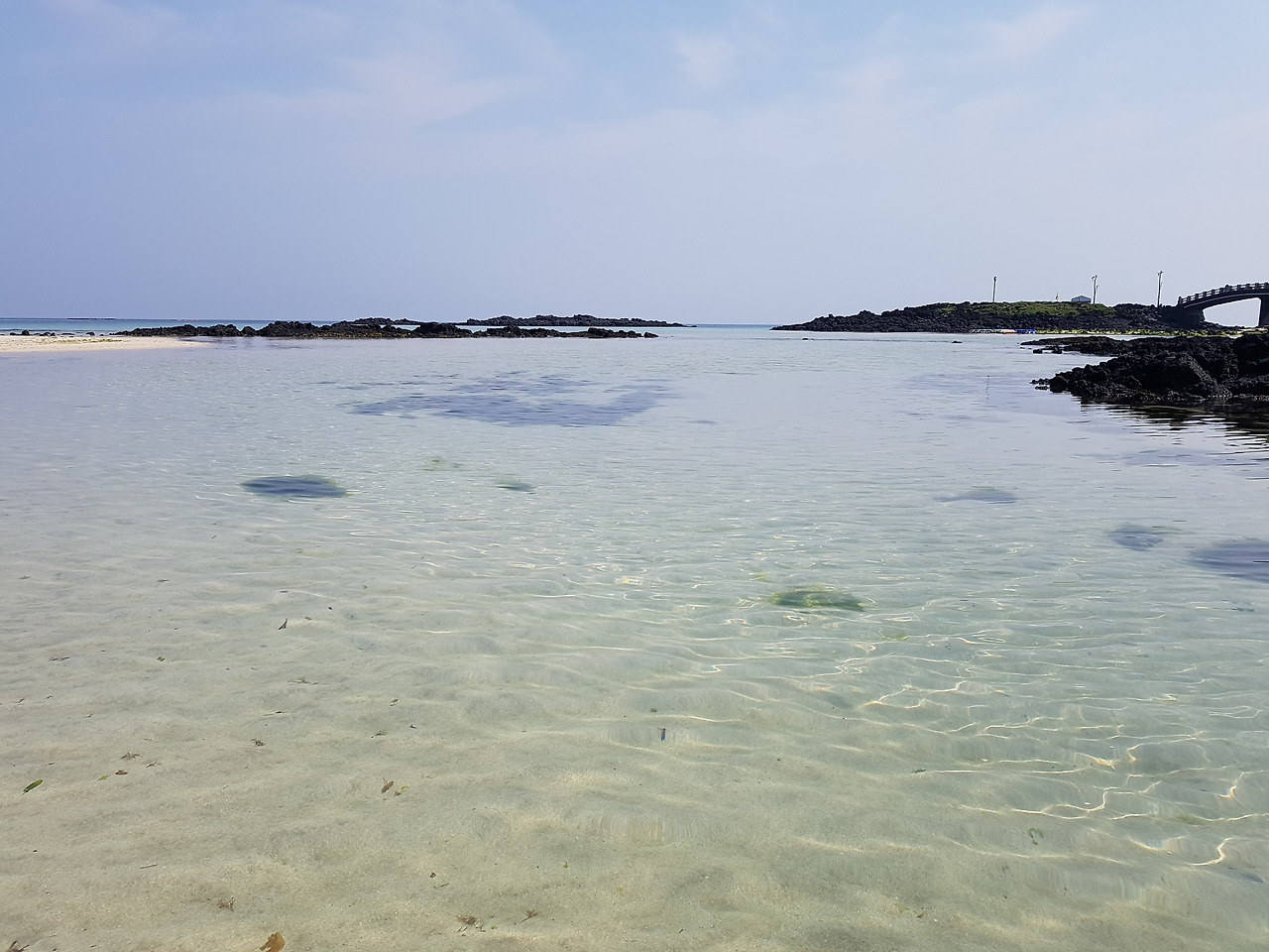 정말 바다가 너~~무 너무 맑더라구요! 우도에서도 실컷 본 파란 바다였지만, 제주도에서 보니까 또다른 맑은 바다. 꼭 계곡물처럼 바닥이 훤히 보이고. 같은 바다인데 동해안이나 서해안 바다랑 참 달라요. 정말 볼수록 너무 아름다워서 감탄만 했네요. ㅎㅎㅎ