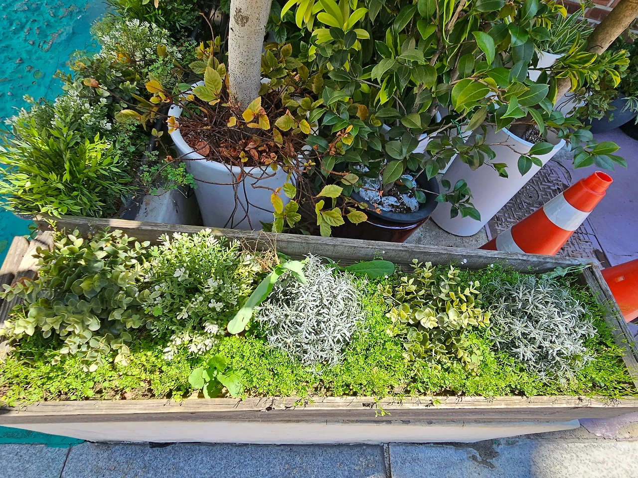 수영장 가는 길, 어린이집 앞에 놓인 작은 화단에 화초.