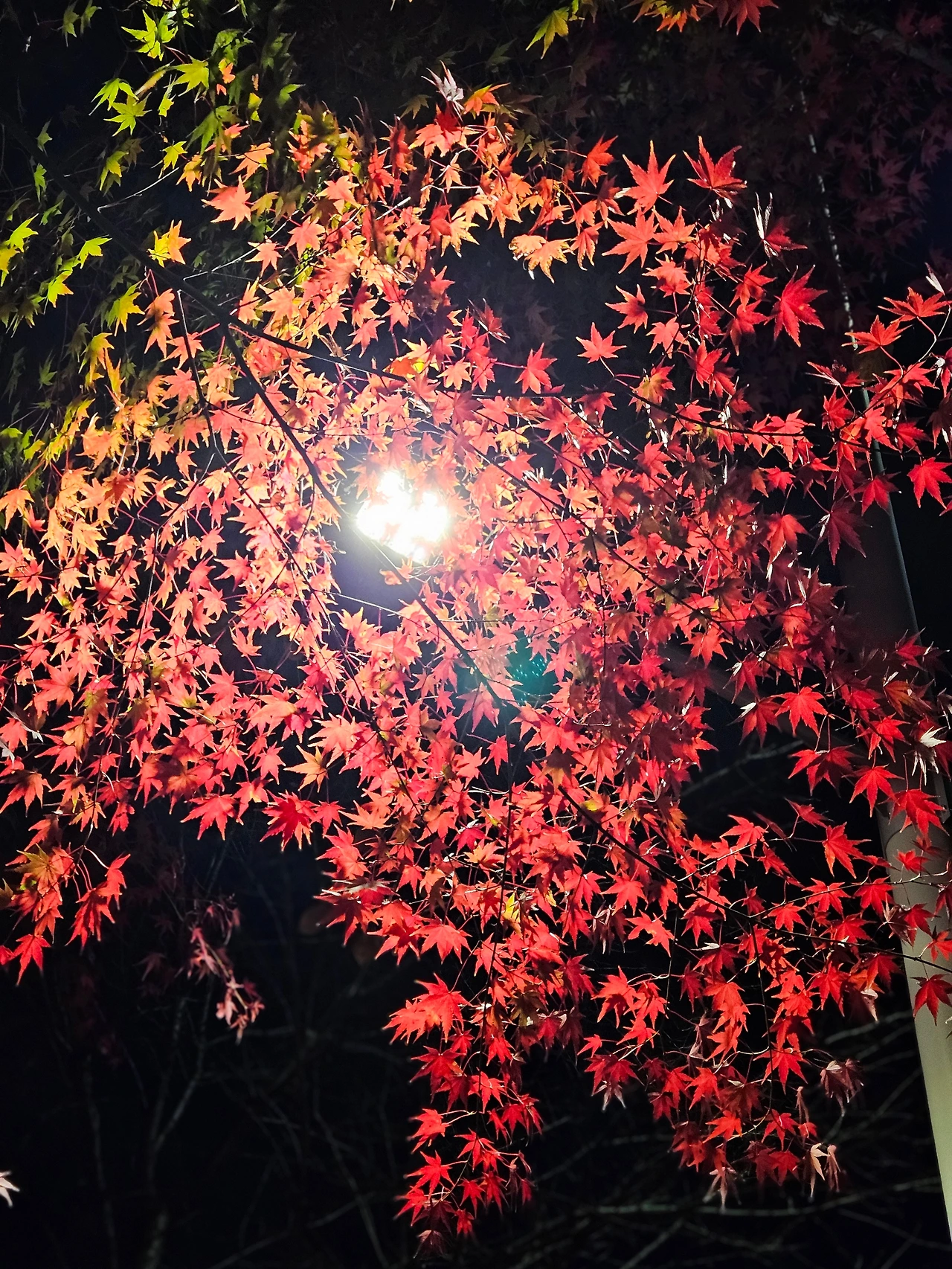 가로등에 둘러싸인 단풍잎이