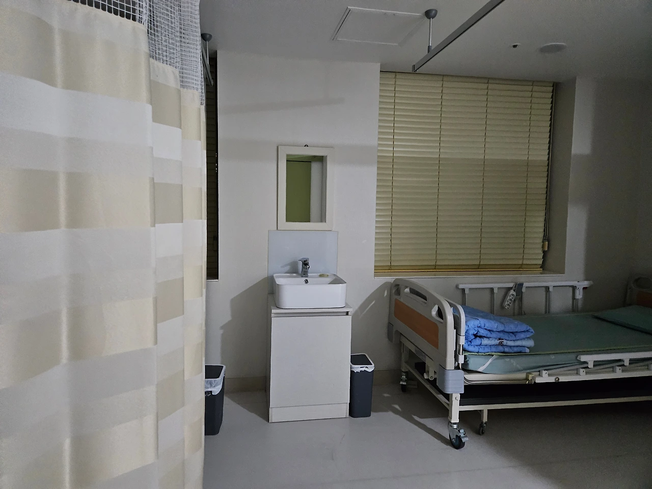 낮에 두 분이 나가고 혼자 4인실을 과분하게 쓰고 있다. 티브이가 없지만 오픈된 세면대와 거울이 있어 맘에 든다.