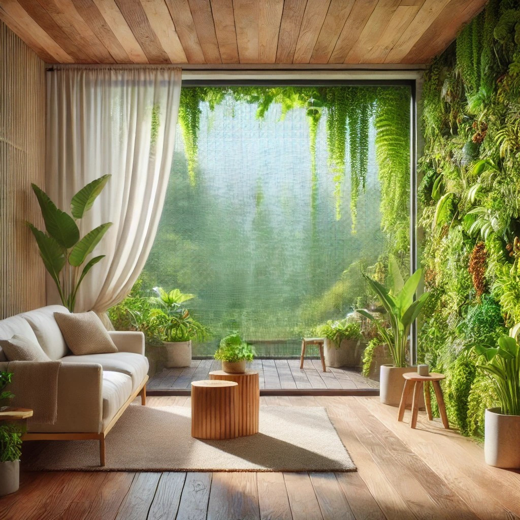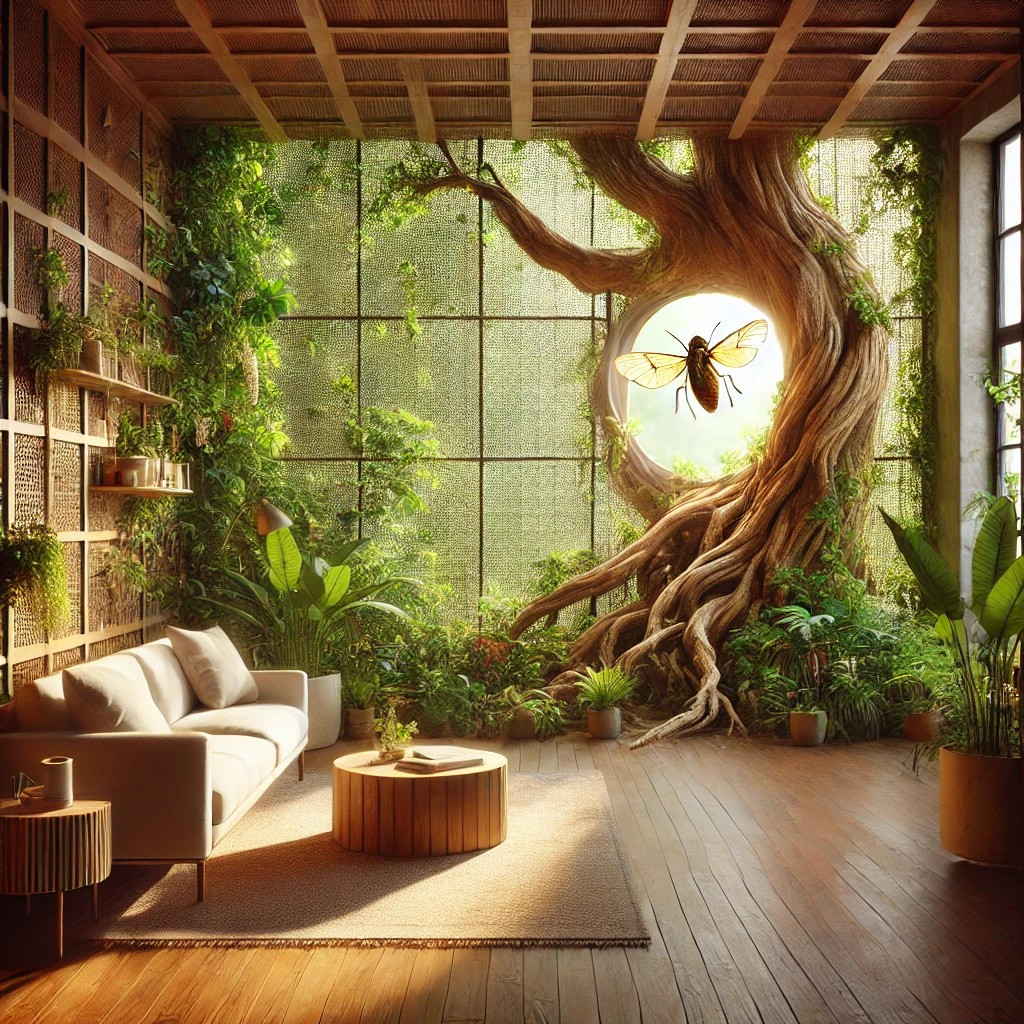 챗GPT야, 이번엔 방충망 안의 거실을 정원으로 만들어줘. 매미가 들어오고 싶었나 봐.