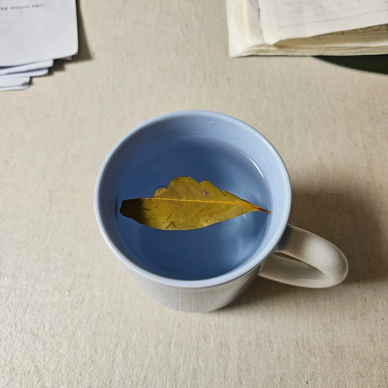 차 한 잎을 따뜻한 온수에 담가 마시면 월계수 향이 은은히 좋아 두세 번은 우려먹는다. 차망이 필요 없어서 더 좋은 차!