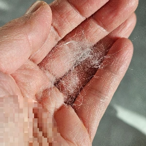 손 위에 고양이 털이 한 움큼