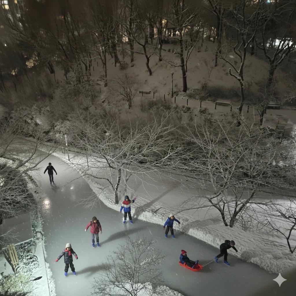 집 앞에 눈썰매장이 겨울마다 생기면 실컷 탈 텐데.