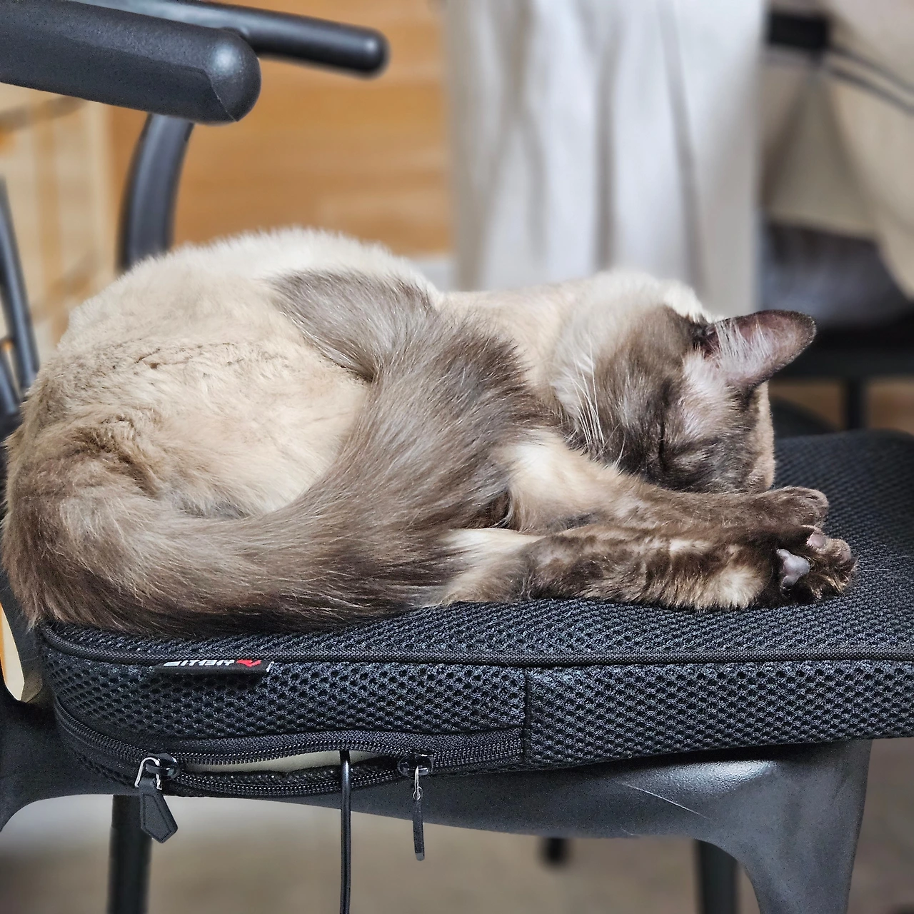 그래도 연근이는 사랑스럽다. 30분 정도 전기 찜질을 하고 내려온 사이, 얼른 나는 또 뺏길까 봐 방석에 앉았다.