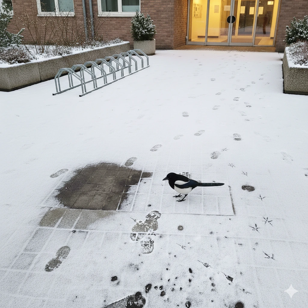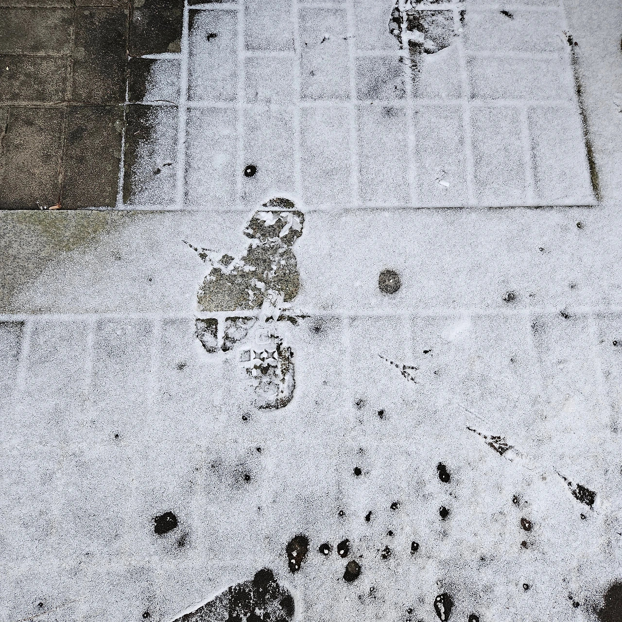 사람과 새의 발자국이 닿은 곳에 눈길이 갔다.