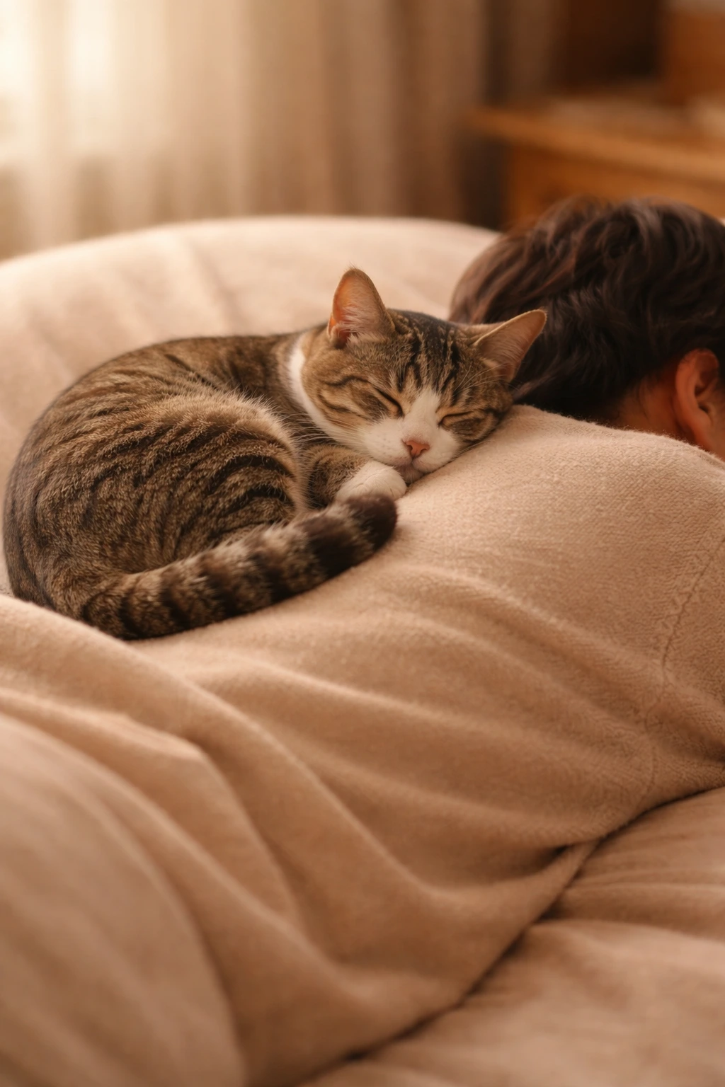 고양이가 기대면
