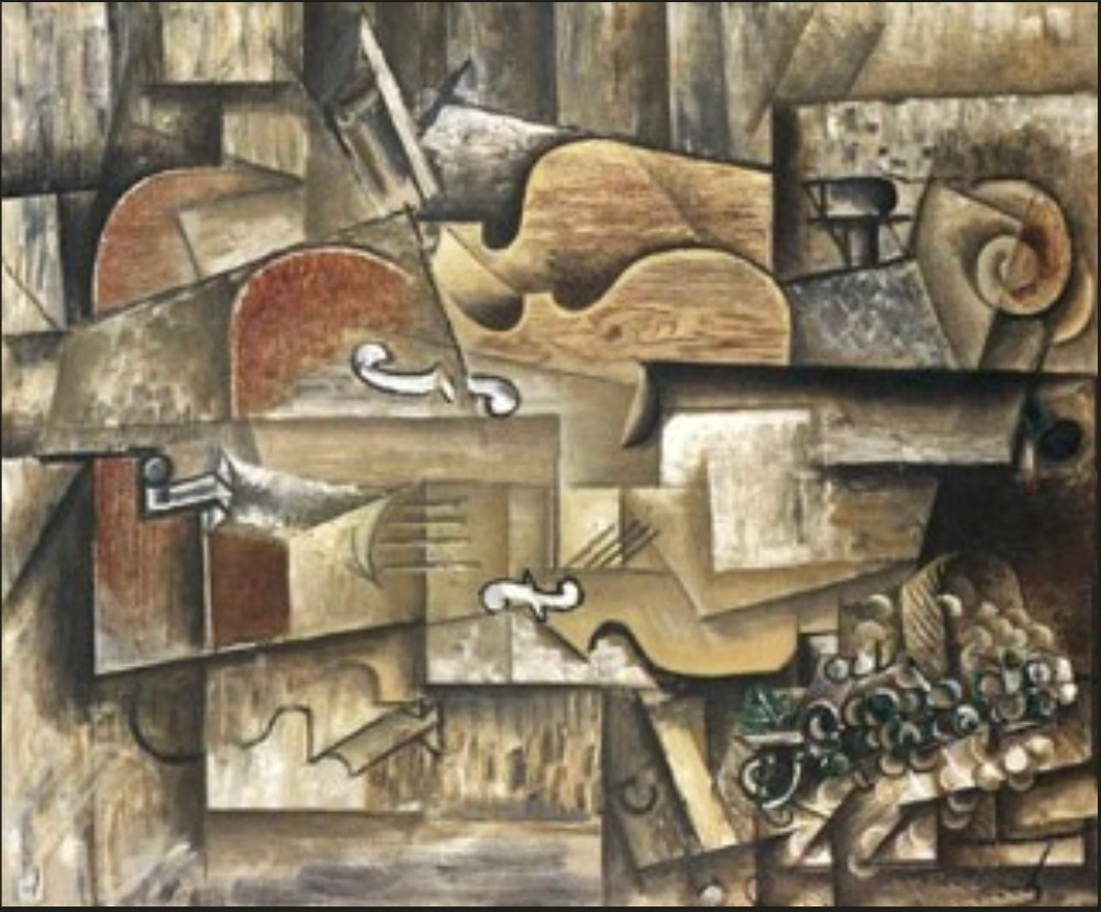 이와 같은 이유로 피카소의 바이올린을 소재로 한 위 정물화 같은 작품이 그려졌다. 이 작품은 어떤 면으로는 소위 이집트인의 원칙으로 되돌아가고 있음을 보여준다. 그 원칙이란 사물의 특징적 형태가 가장 잘 드러나는 각도에서 그리는 것을 말한다.(이전 이집트 미술을 다룬 장에서 언급한 바 있다.) 위 그림은 서로 연결되지 않은 형태들을 뒤죽박죽 섞어 놓은 것처럼 보여도 결코 혼잡하게 보이지 않는다. 그 이유는 화가가 자신의 그림을 얼마간 균등한 요소로 구성하고 있어 화면 전체가 일관성을 보이고 있기 때문이다.
