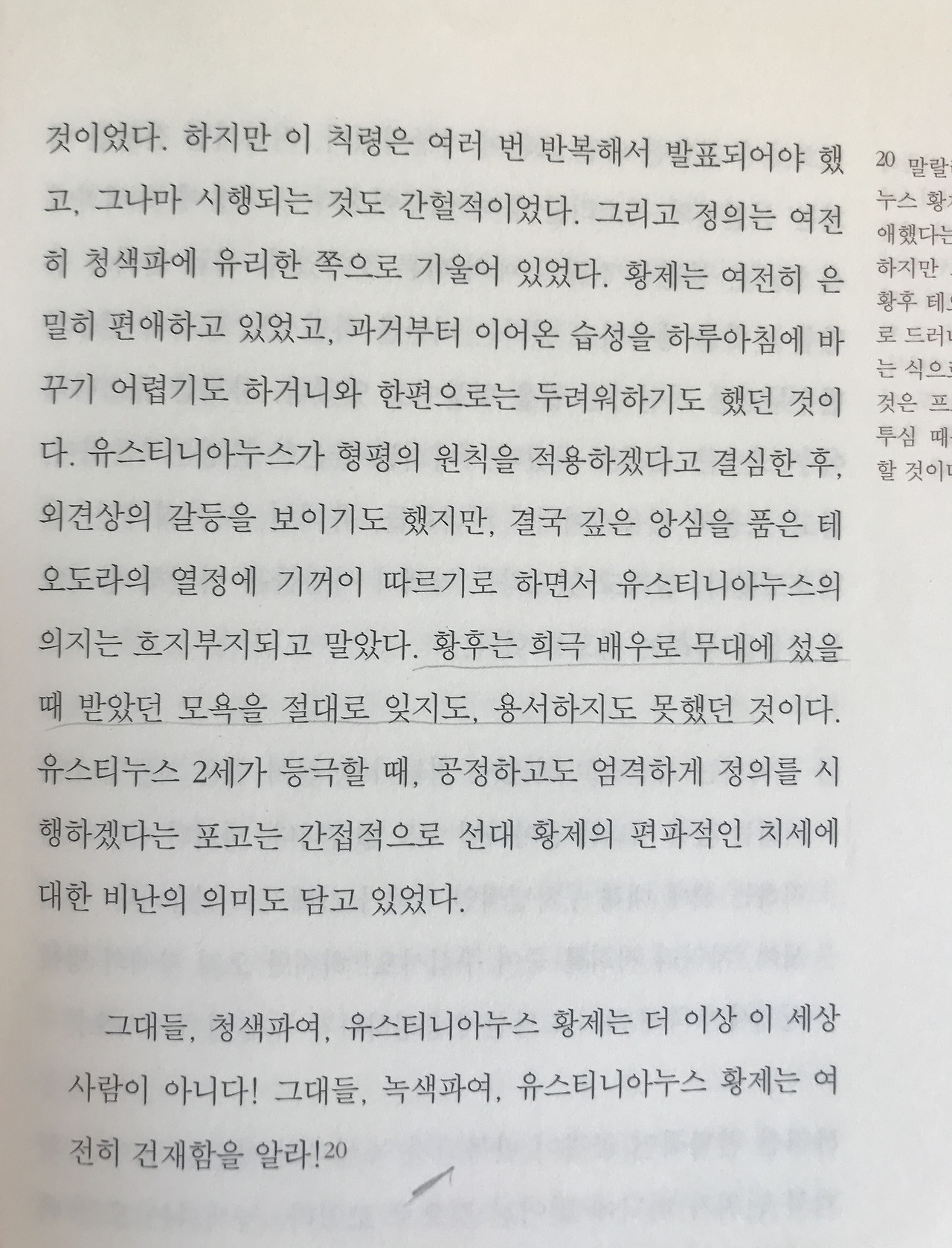 "테오도라는 타고난 매력과 후천적으로 익힌 기교를 통해 유스티니아누스의 사랑을 지속적으로 누릴 수 있었다." p.55