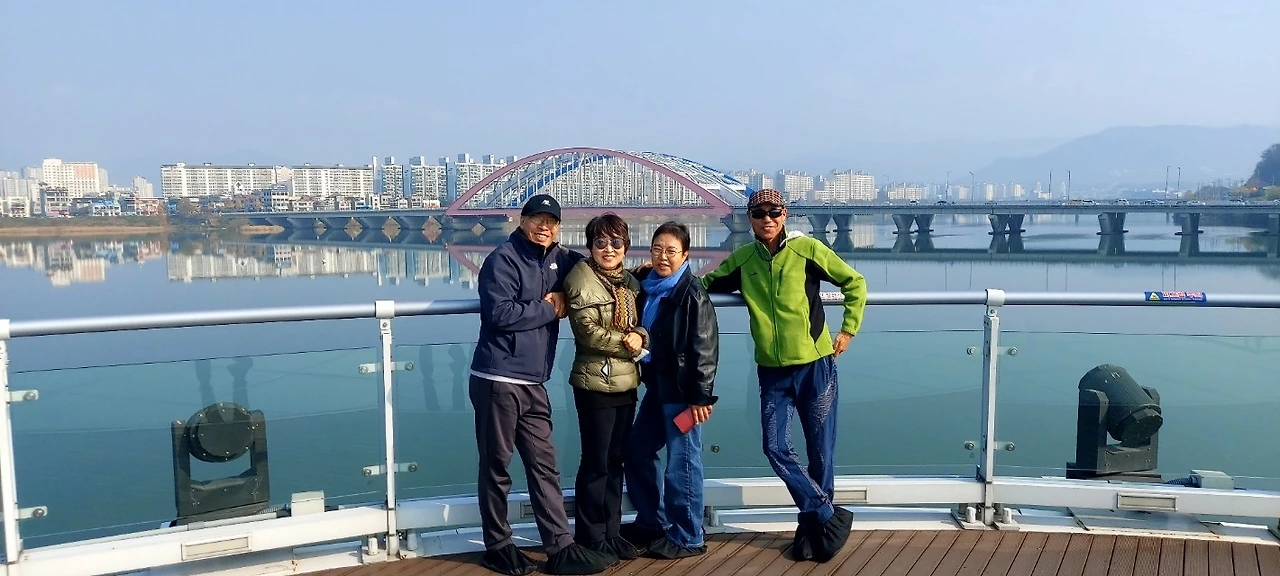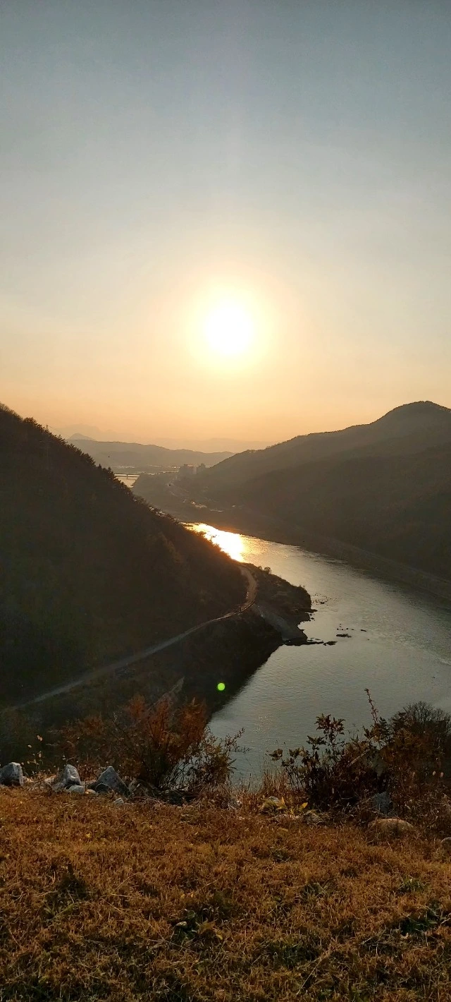 제방 뚝길을 따라 건너편의 정자까지 걸으며 뉘엿뉘엿 저무는 해를 품어가는 잠잠한 소양강 나루를 감상하고는..