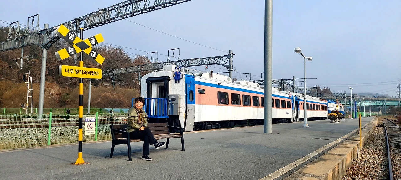 아침 10시경 도착한 김유정역은 60대 여행객인 우리에게 추억이 물씬 쏟아지는 감성의 레트로 역이다.