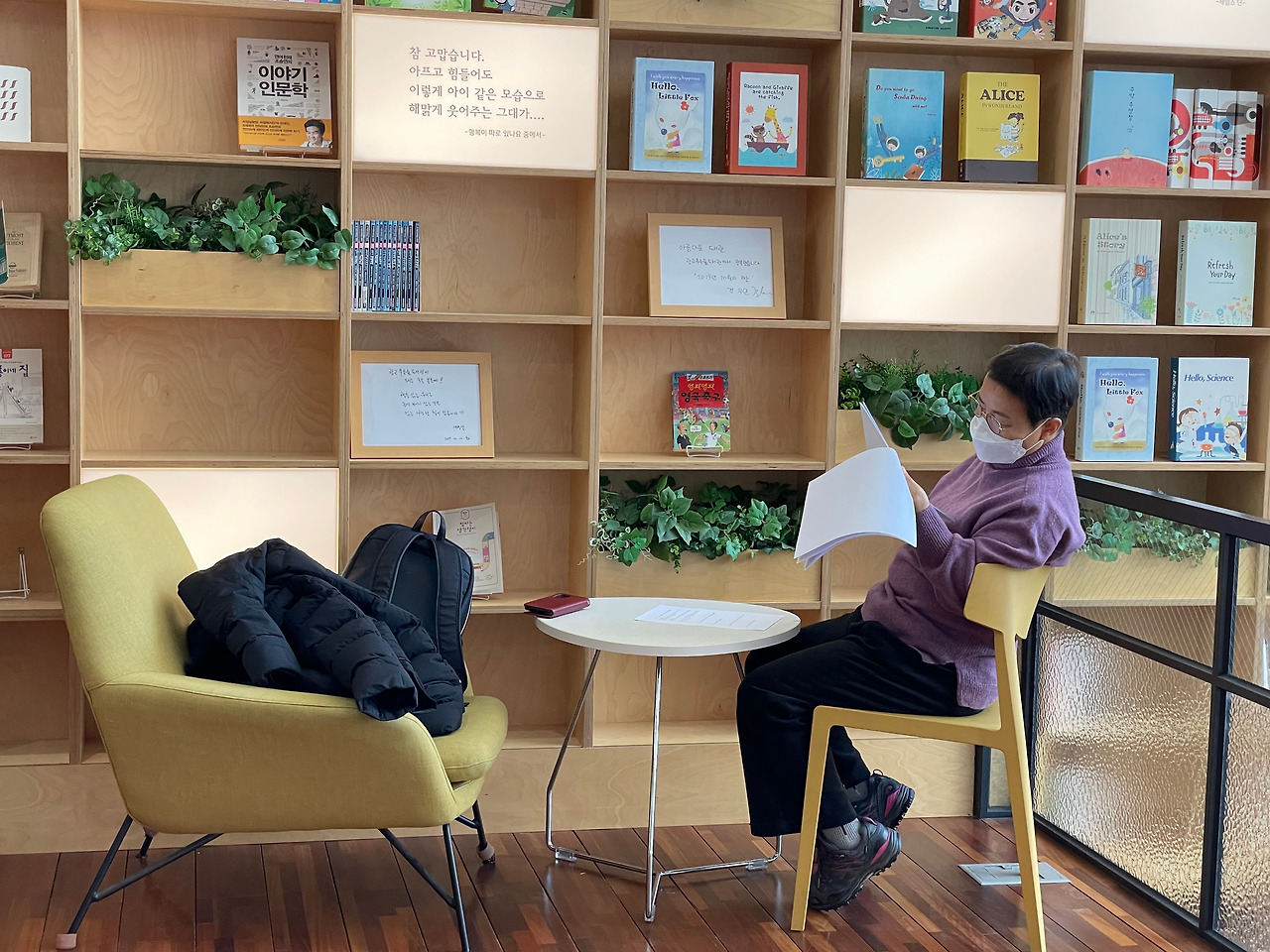 우리는 그렇게 40분 정도를 걸어 푸른숲도서관에 도착했고, 자리를 잡고 앉아 준비한 책을 읽기 시작했다.