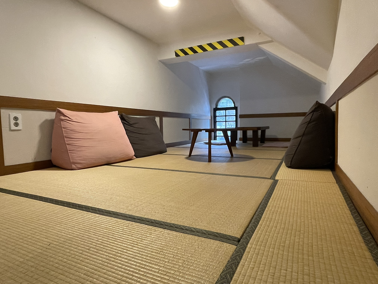 가파르고 좁은 계단을 따라 3개 층으로 구성된 카페 공간은 층마다 특유의 멋을 뿜어내고 있었다. 맨 위층이 이 적산가옥의 특징을 가장 잘 나타내는 다딤이방이었지만.. 우리는 6명이 독서토론할 수 있는 독립된 공간을 찾아 맨 아래층의 별실에 자리 잡았다. 이곳은 타일바닥으로 이전에 현관 마당이었을 것으로 짐작되는 곳이다.